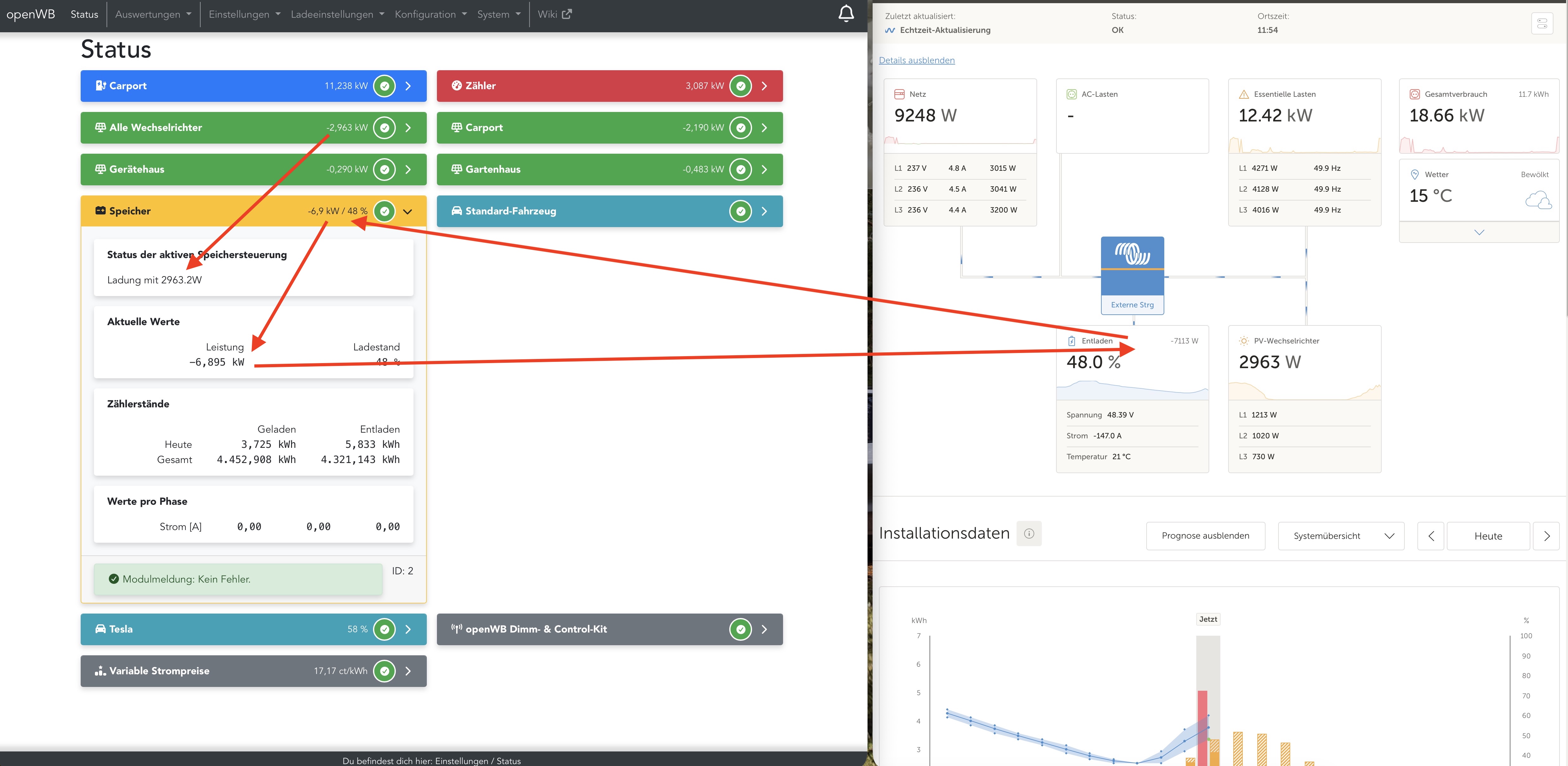 openWB-2 Standard+ | openWB EVU Kit v2 MID| 9,9kWp mit Kostal Plenticore 8.5 plus | VW ID.3, Kia EV6, Smart EQ forfour