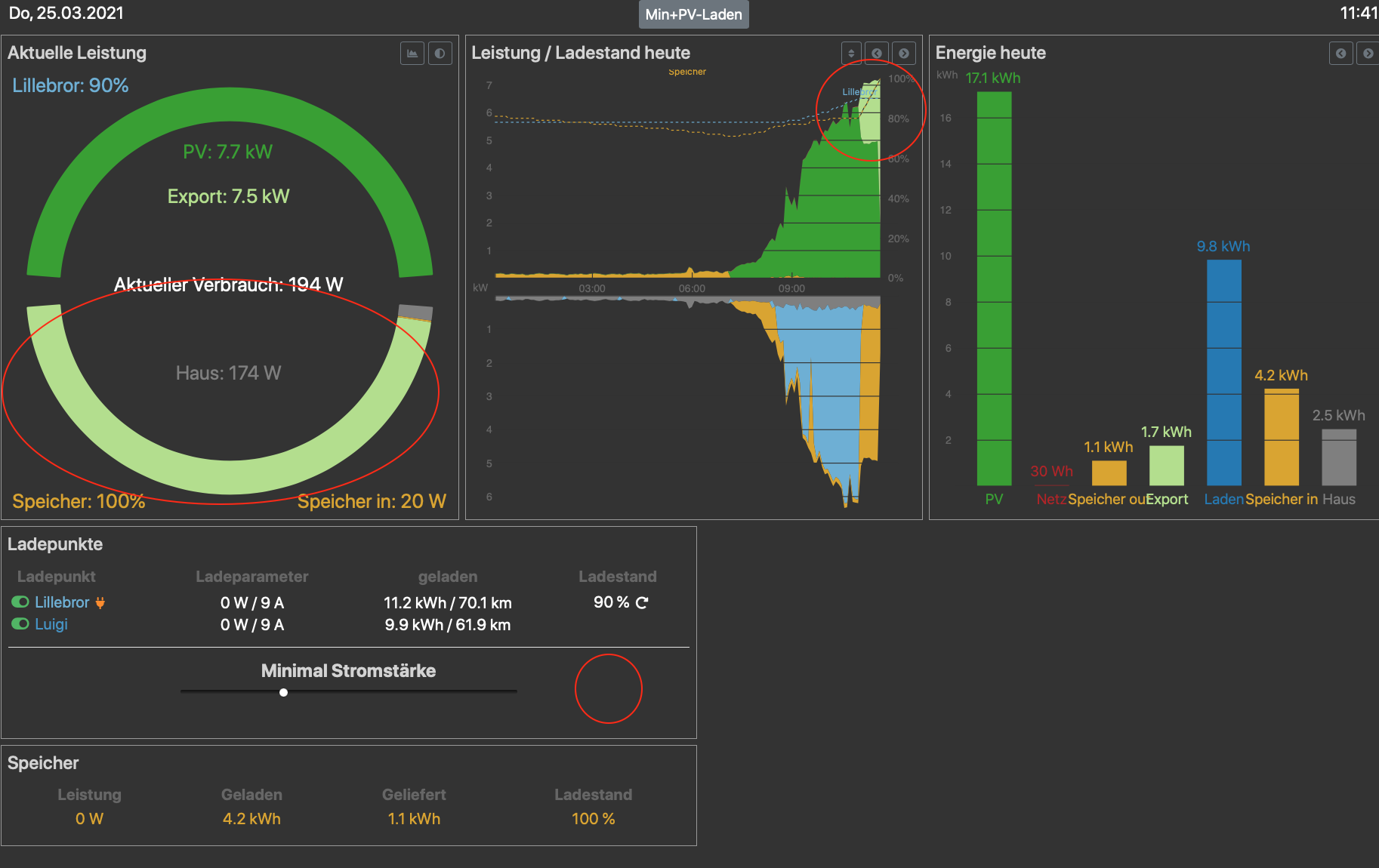 Weiterhin wäre es perfekt, wenn man die eingestellt Stromstärke beim "Min+PV-Laden" sichtbar machen könnte, da es nur mit dem Slider schwierig ist abzuschätzen, welche Stromstärke eingestellt ist.
