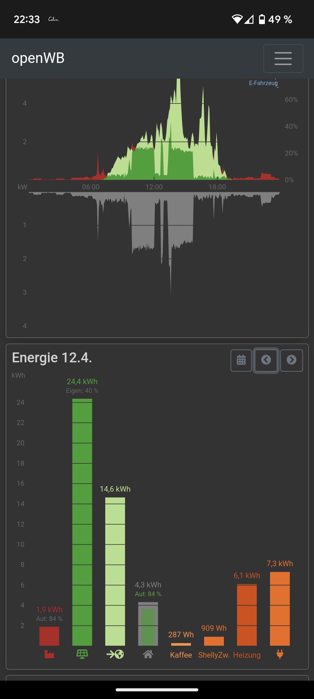 - Energienetz: E(xportiert) und I(mportiert) für den jeweiligen Tag links und rechts unterhalb des Energienetz Kreises (im schwarzen Bereich)