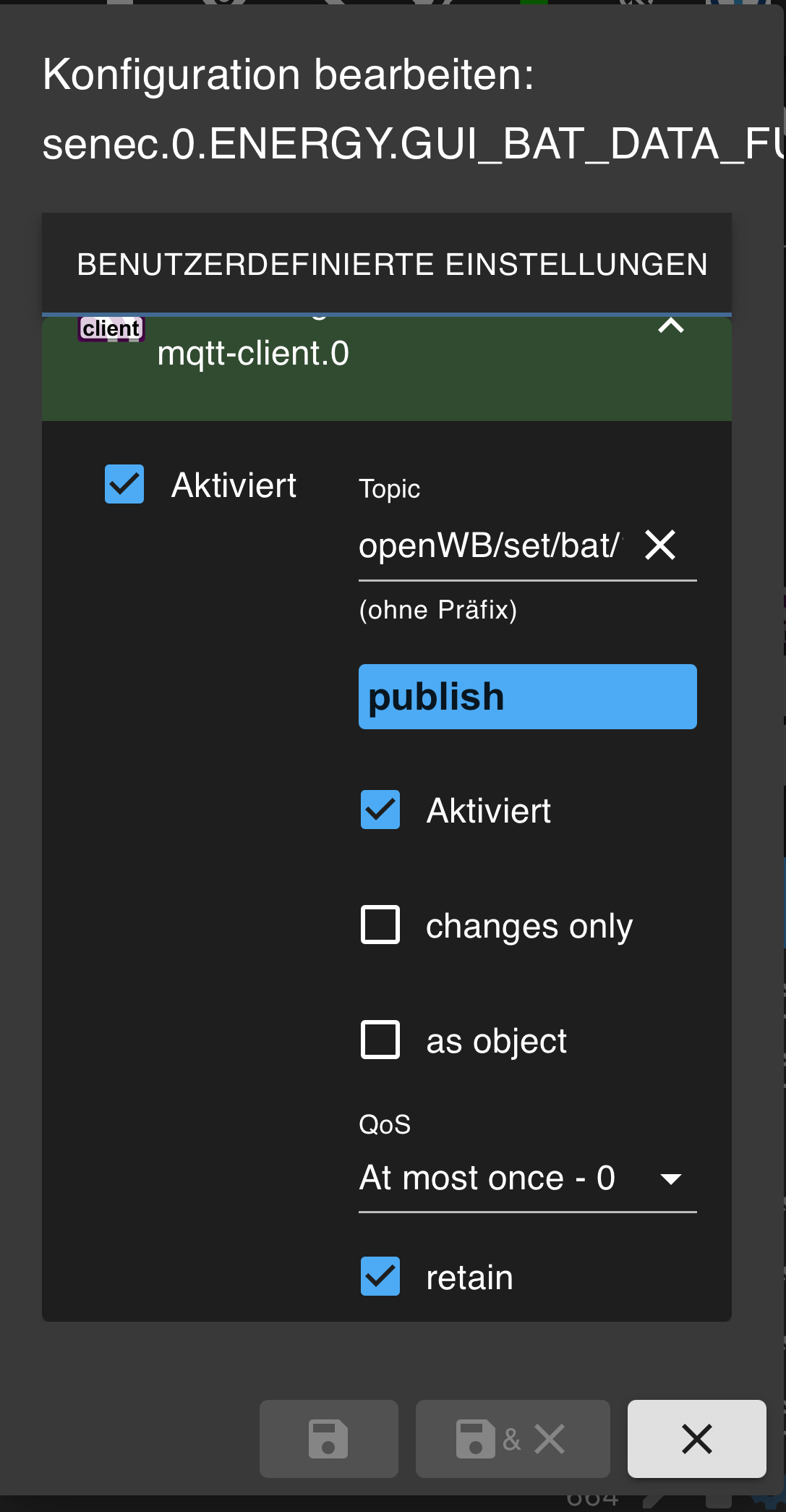 Kannst ja erstmal manuell versuchen zu beschreiben. Wenn das klappt liegt das Problem nicht an der openWB sondern einer nicht richtig konfigurierten MQTT Brücke.