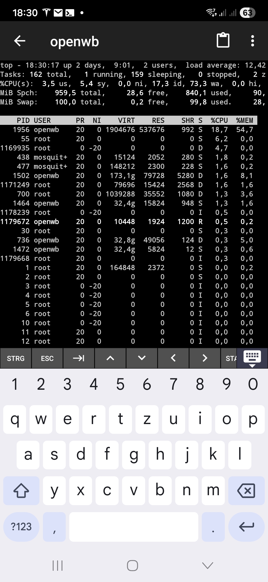 Hier werden immer neue Threads gestartet, bis das RaspiOS an sein Limit kommt. Also kein Speicherleck in dem Sinne wie beim Display damals. Der betroffene Prozess ist das openWB Backend.zut hat geschrieben: Mo Jun 02, 2025 4:44 pm Ich hatte das vor Monaten mit einem Speicherleck im Display-Chromium. Da ist letztlich ein Neustart des Prozesses alle 2 Tage daraus geworden.
