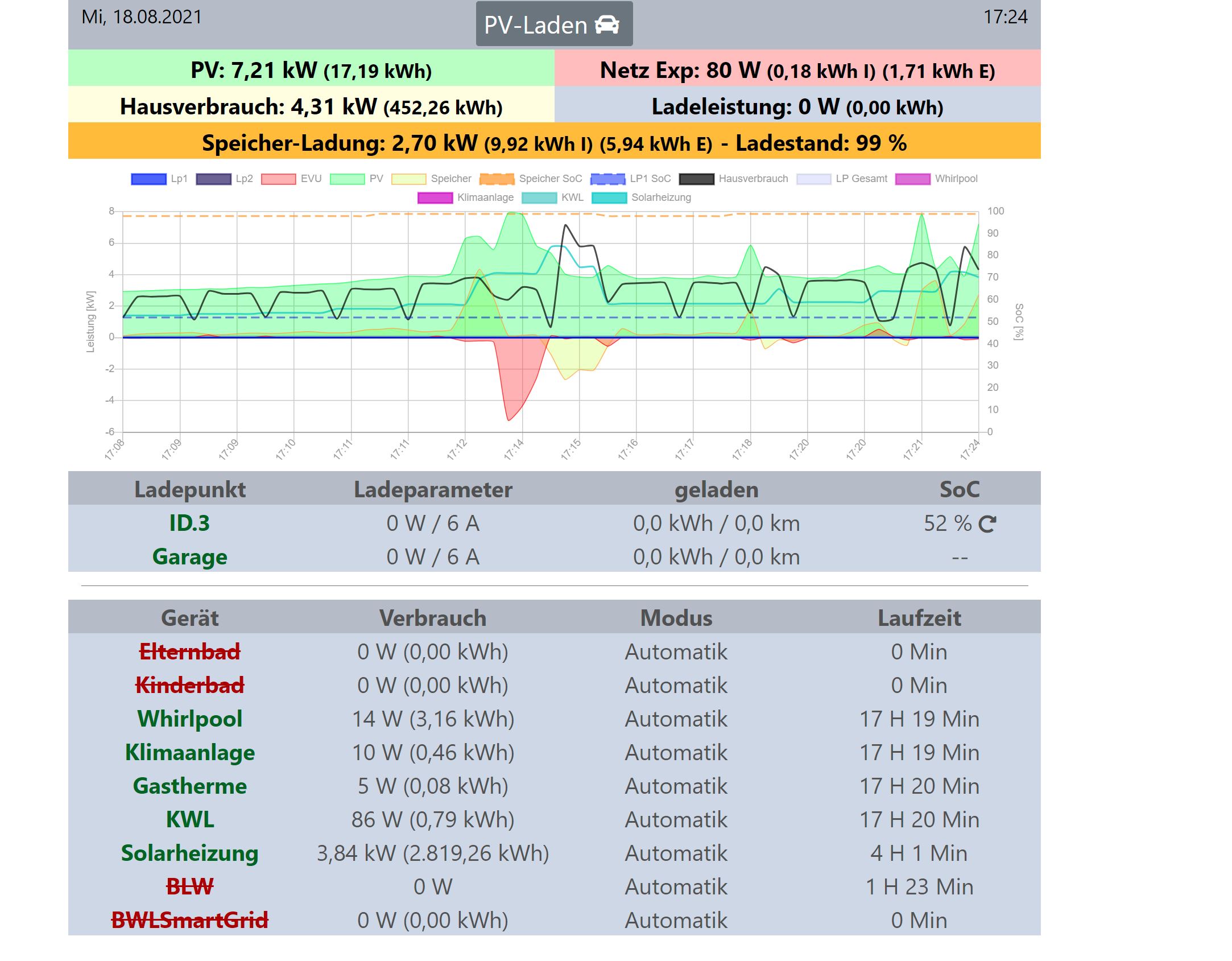 2021-08-18 17:22:37: EVU Bezug(-)/Einspeisung(+): 187 max Speicherladung: 6000