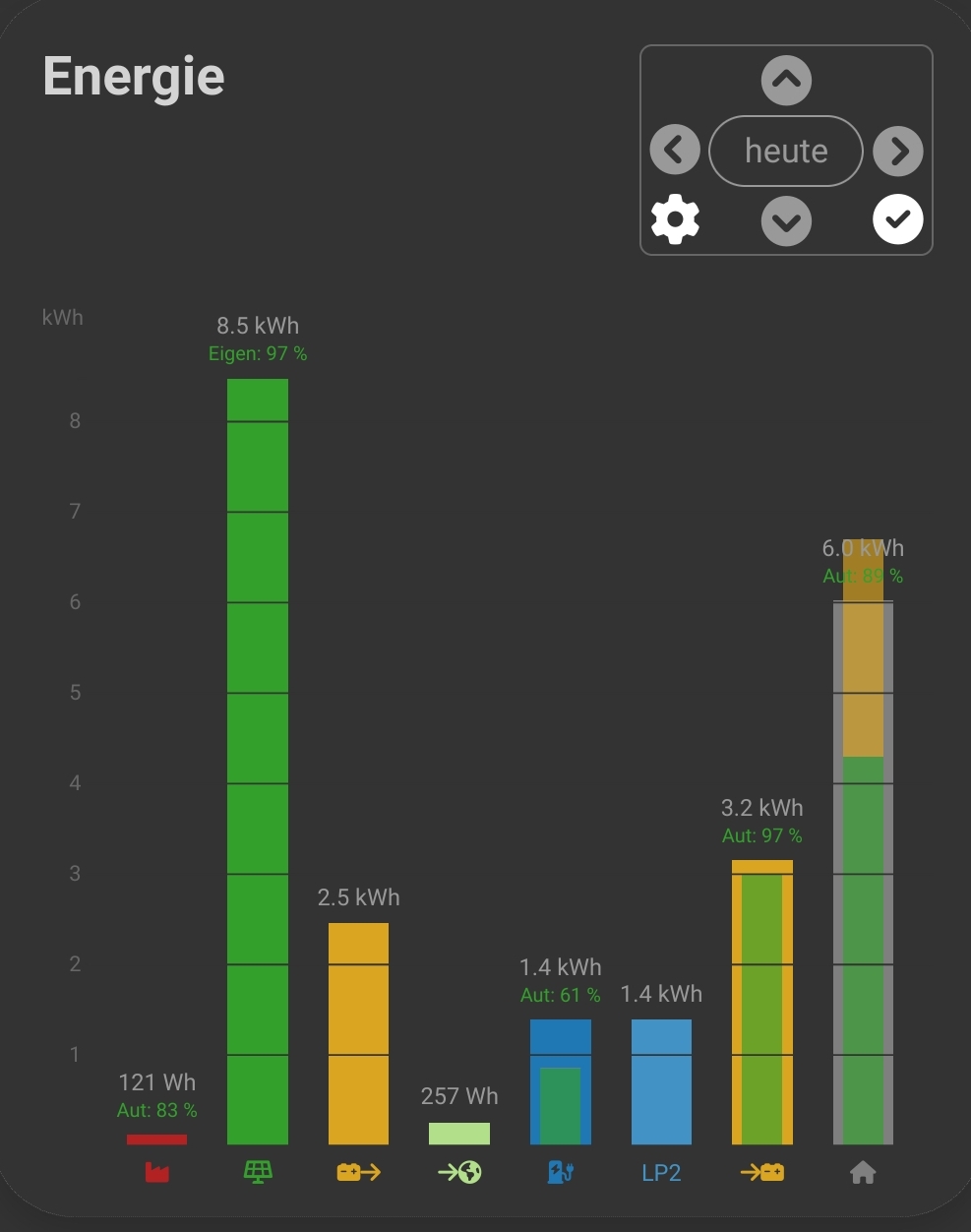 LP2 wird nun SoC wie auch Energie alles korrekt dargestellt und auch das neue feature für volle Bildschirm Breite ausnutzen ist perfekt für unser Haussteuerungstablet!