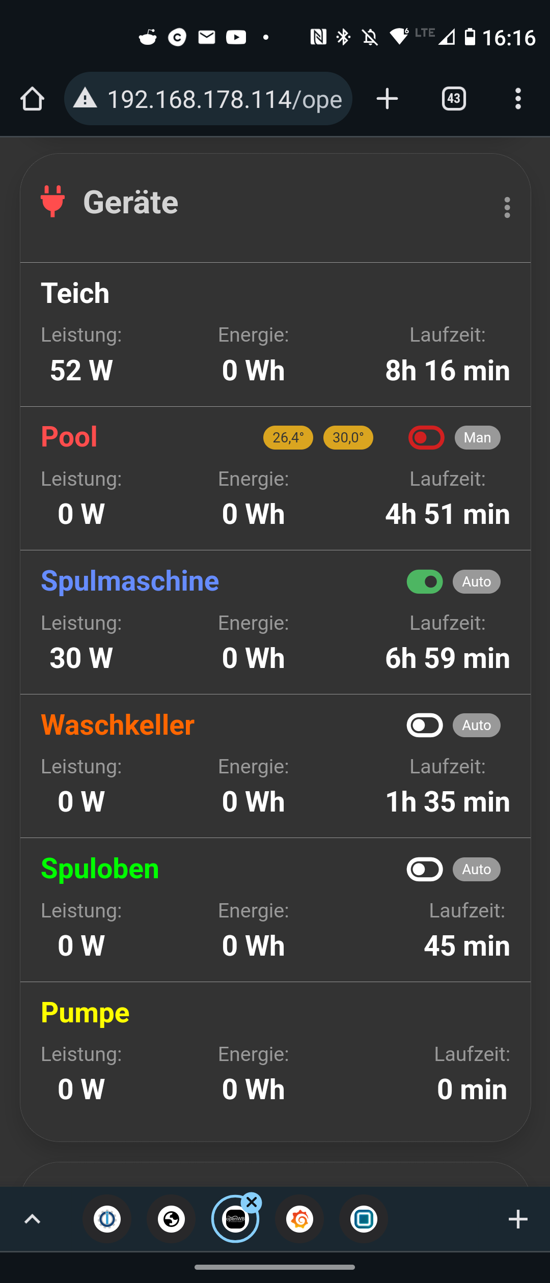 Lädt man das Webinterface neu, ist das Gerät wieder grün. Zusätzlich die spontanten Starts wie bei thesorrow.