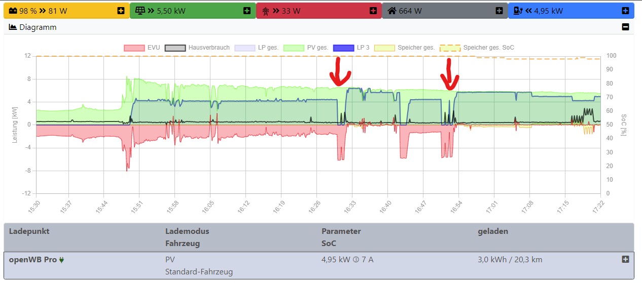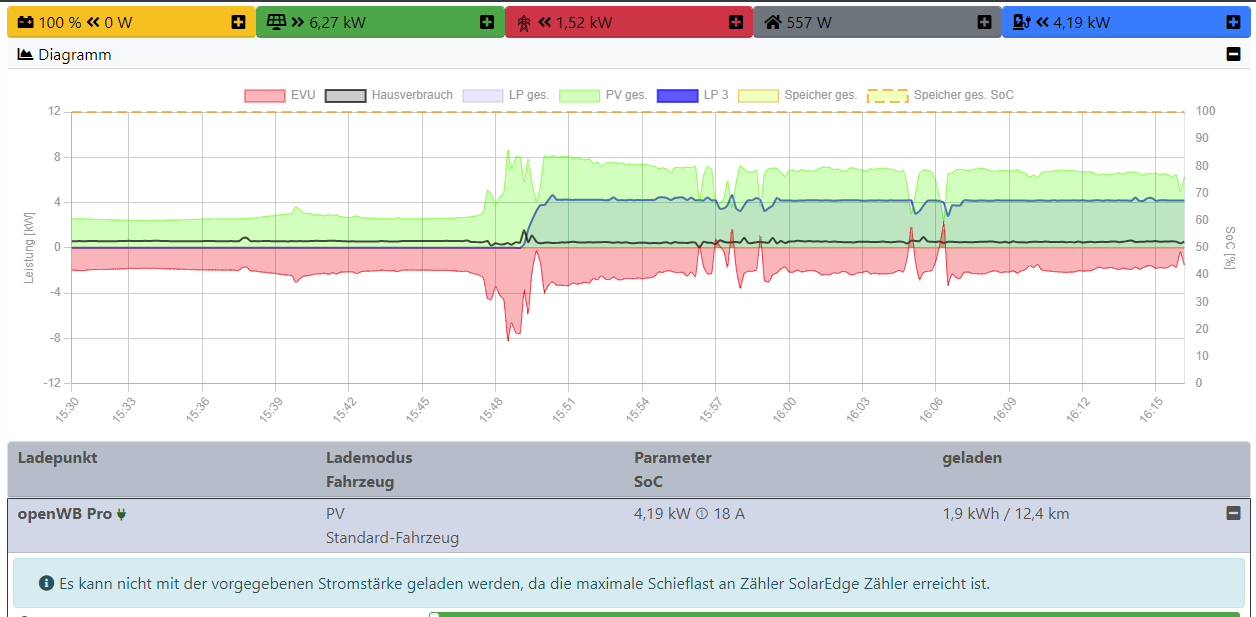 Hab jetzt auf den aktuellen Master gewechselt und musste gerade wieder feststellen, dass er bei Schieflastbegrenzung nicht von 1p auf 3p umschaltet, wenn - zumindest für mich - die Obergrenze für die eingestellte Zeit erreicht zu sein scheint. Ich kann leider im Infokasten auch nicht sehen, ob der Umschalttimer läuft oder nicht...