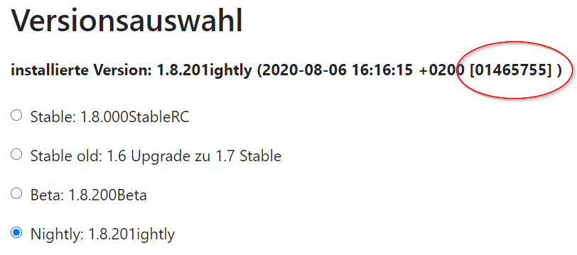 Ich habe ein Update durchgeführt, aber es wird immer noch die Nightly 1.8.201ightly angezeigt. Ist das richtig so?