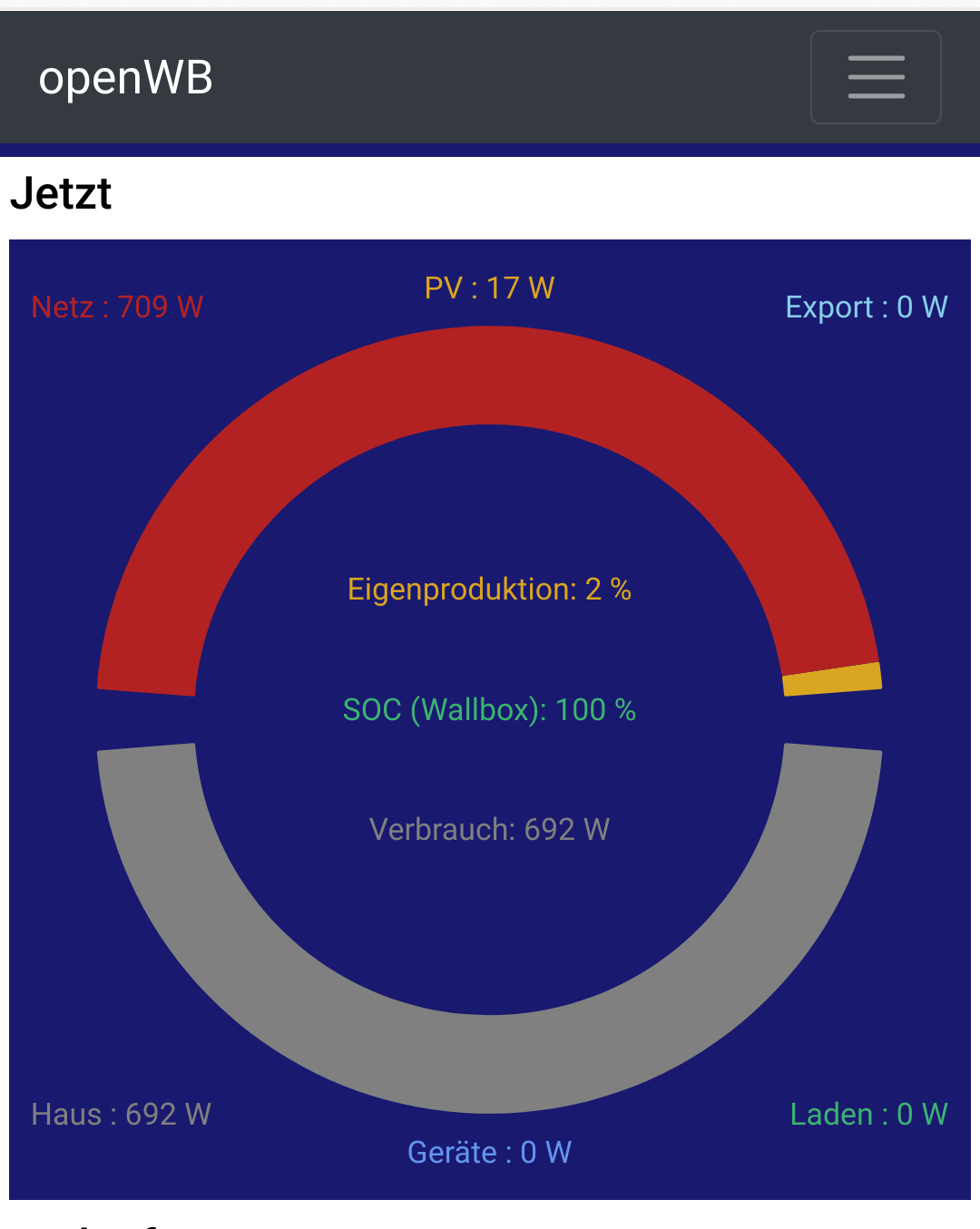 ich fand es eigentlich anschaulicher, wenn im oberen Teil die Stromquellen (Netz, WR) angezeigt werden und im unteren, wie sich der Verbrauch aufteilt (Ladepunkte, Geräte, Hausverbrauch).