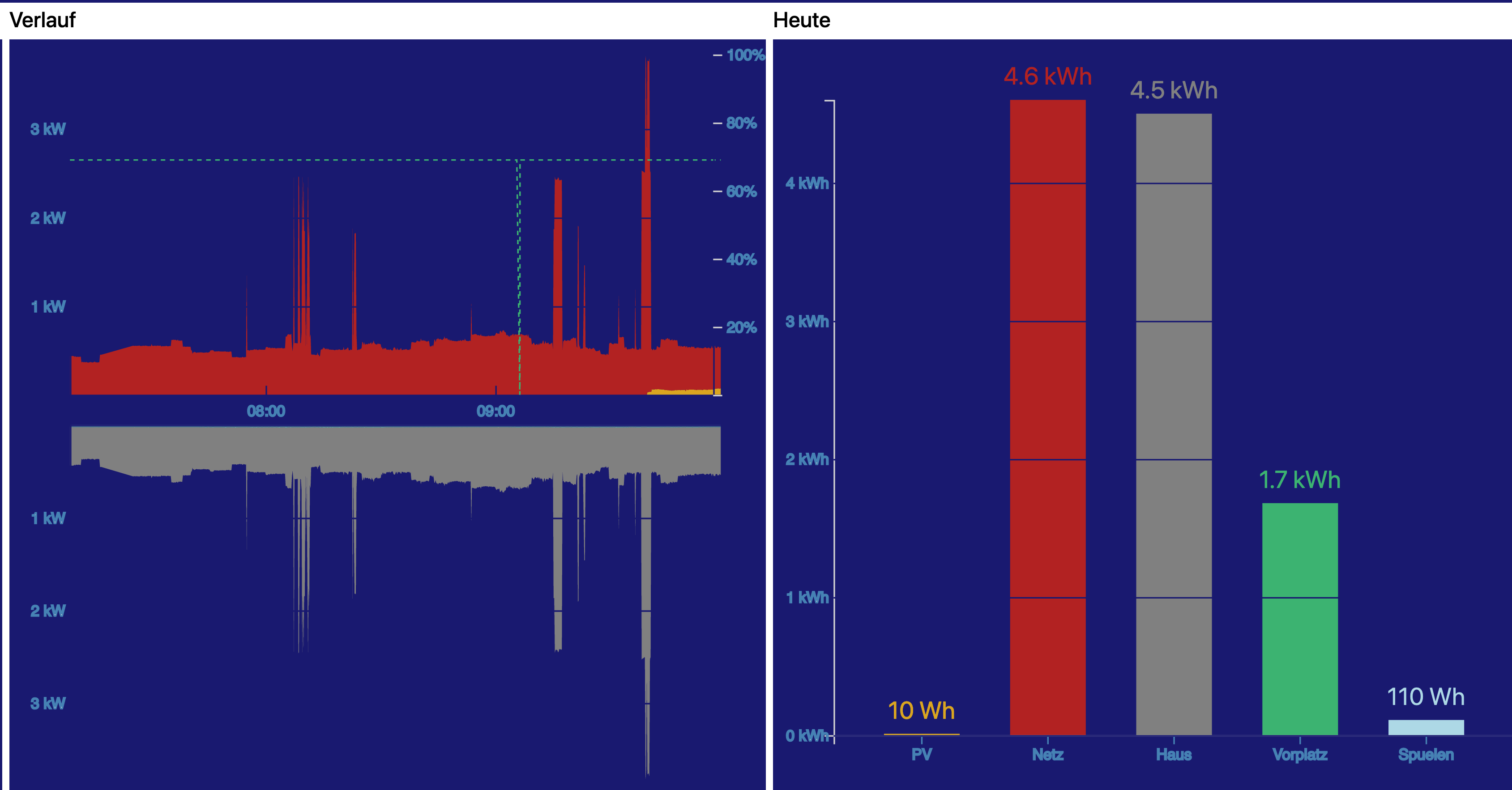 Im Screenshot errechnet sich der Hausverbrauch als Netzbezug + (-PV), was nicht sehr anschaulich ist.