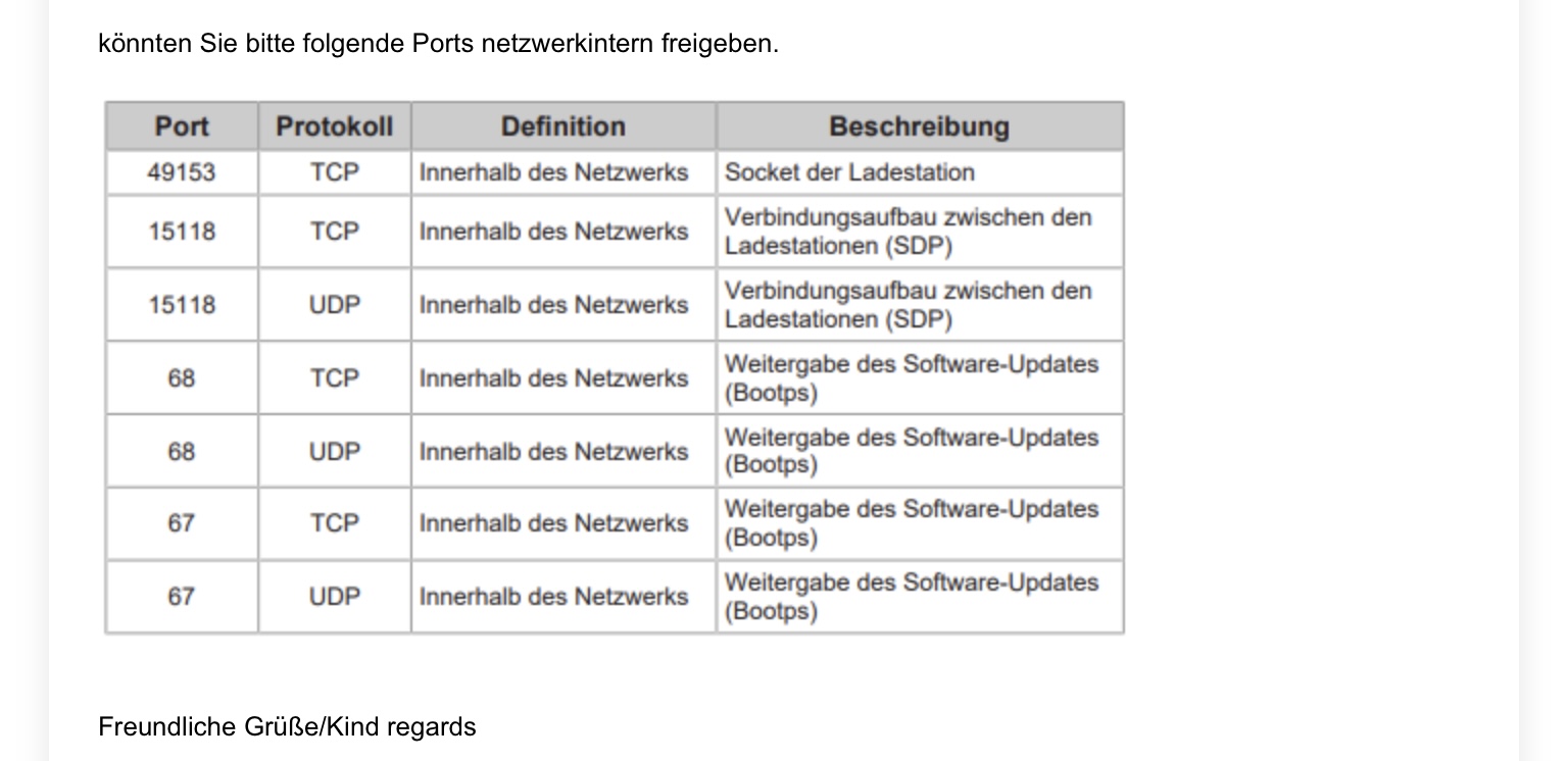 Ich habe extra darauf geachtet, dass beide Wallboxen Phasenverschoben angeschlossen werden. Allerdings wird die Slave P30c in der Master PC30x mit der IP Adresse erkannt und kann somit für die Slave diese Phaseneinstellung nicht vornehmen. Ich konnte aber die Serien Nummer angeben. Keba hat mir aber durchgegeben welche Portfreigaben ich hinzufügen muss. Das versuche ich nochmal…