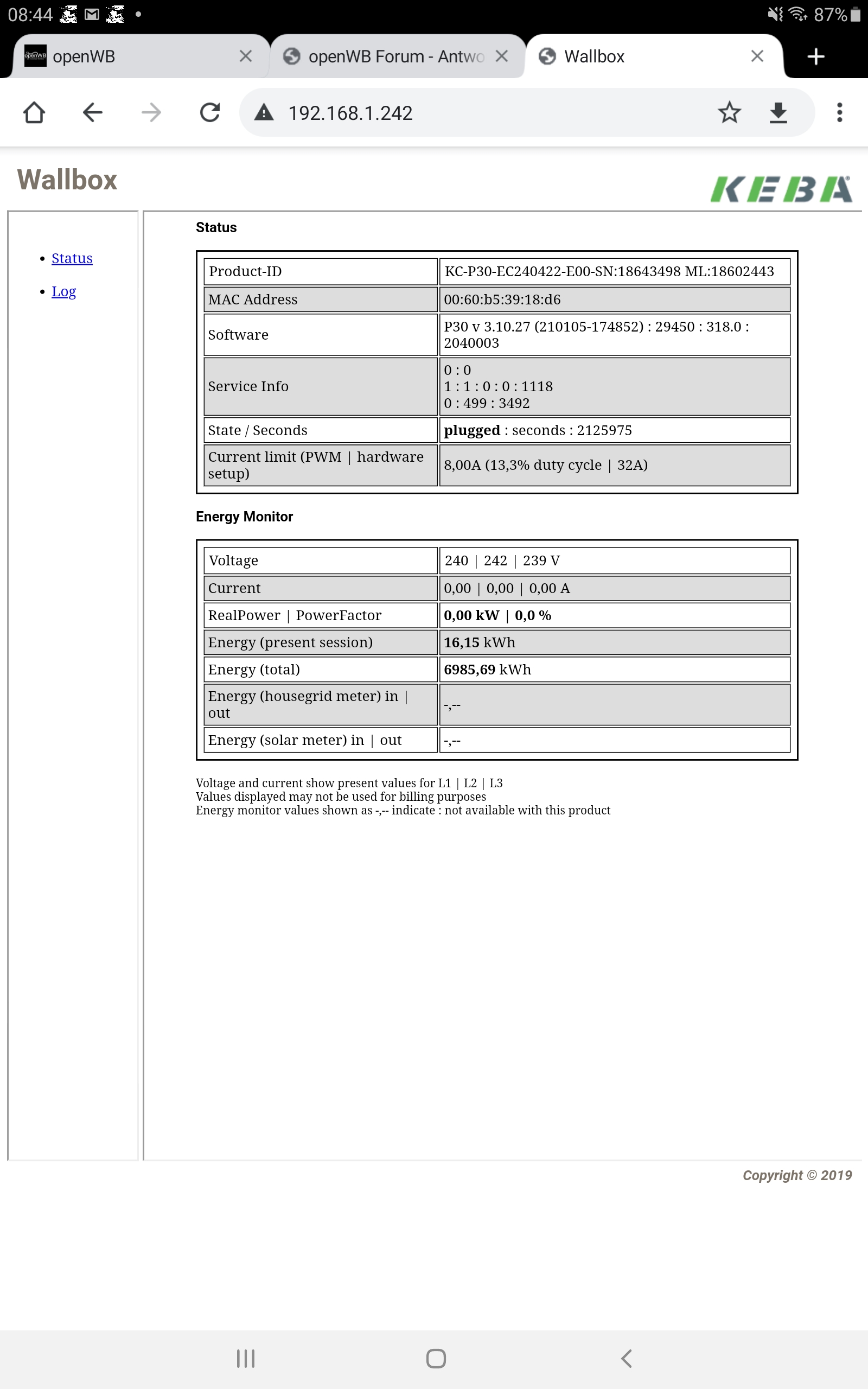 Keba -x / -c mit openwb läuft
