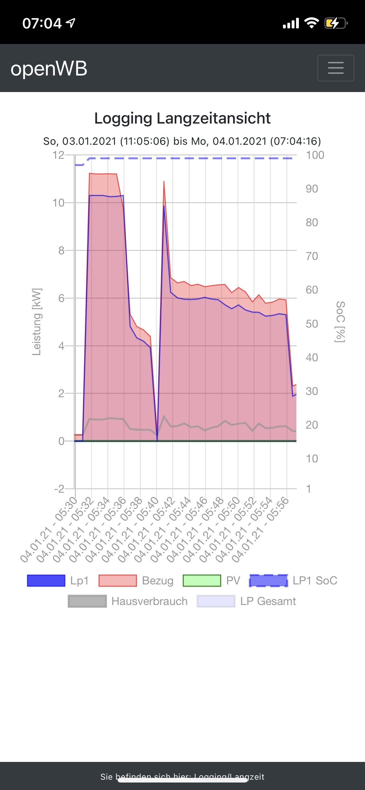 Ich habe diese Nacht die Nachtladenfunktion getestet, welche auch grundsätzlich gut funktioniert hat. Mich wundert allerdings folgendes: