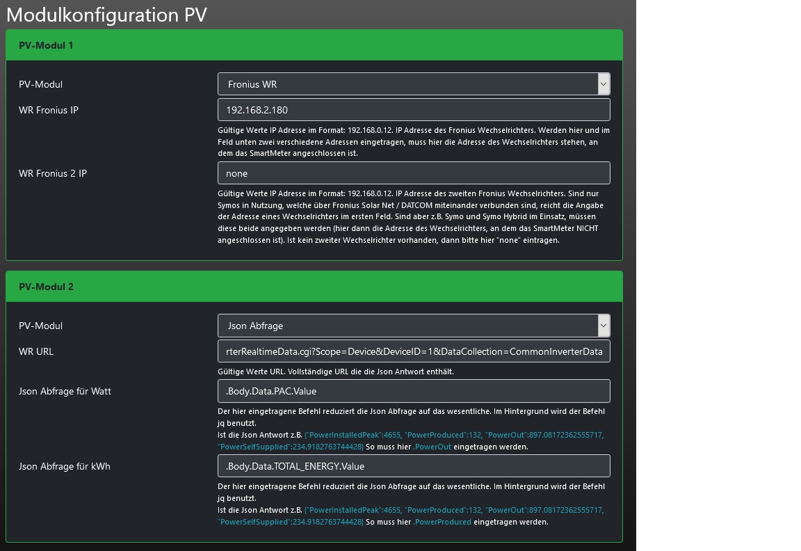 Mach mal bitte einen Screenshot mit der PV Konfiguration .