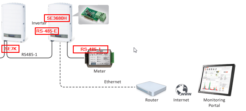 Eigentlich hat der WR SE7K für die PV Module die ID 1 am RS485-E des SE3680H der die Kommunikation und das Ethernet Modul hat...