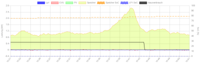 ...gestern Abend, an LP1 noch etwas geladen, heute bei Sonnenstart und EVU-Überschuss läuft die Ladung auch wieder.