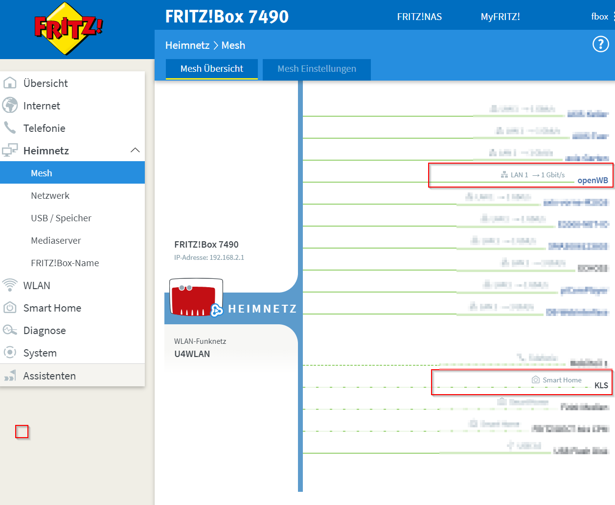 nochmal Danke für Deine Geduld. Ja die Fritzbox sieht die openWB. Diese ist per Lan angebunden. Hängt alles ein einem großen Switch am "Sternpunkt" im Keller.