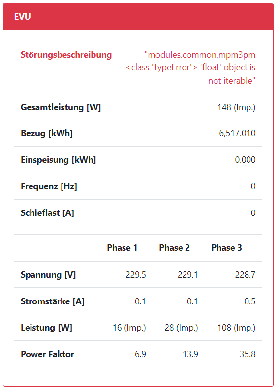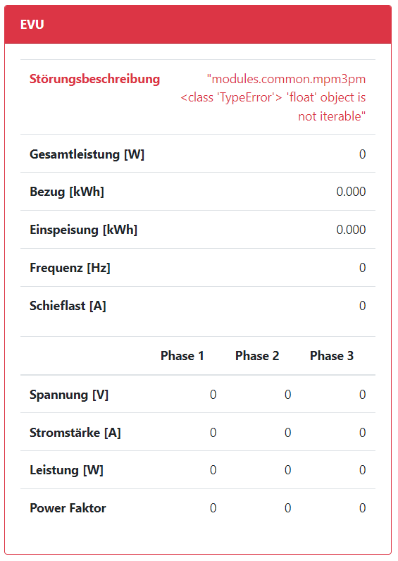 Der Fehler der fehlenden EVU Werte ist immer noch vorhanden!