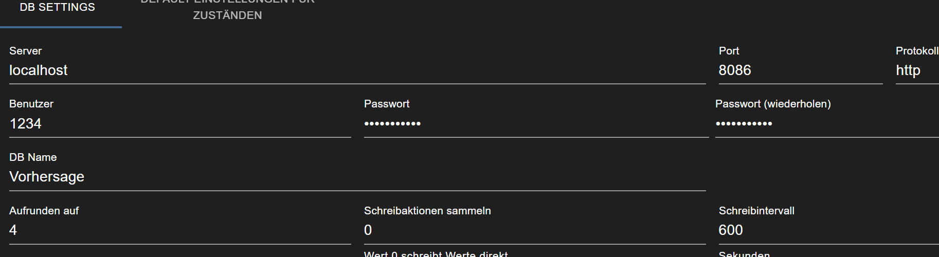 2. In IoBroker hieß die Datenbank zwar Vorhersage, aber in Grafana selber hieß Sie influxdb-1. -> auf Vorhersage abgeändert und es läuft