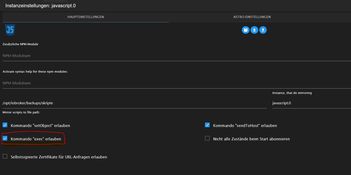 •Solltest du eine Datenbank erstellt haben, hast du wahrscheinlich in den Java-Scripteinstellungen die Ausführung von Exec Befehlen noch nicht erlaubt (sind im Standard verboten)
