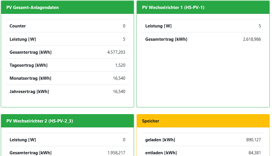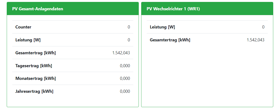 Nur passt Dein Status von vorhin nicht zur csv.! In csv sollte PVgesamt eingetragen sein, als Summe Zähler PV1 + Zähler PV2.
