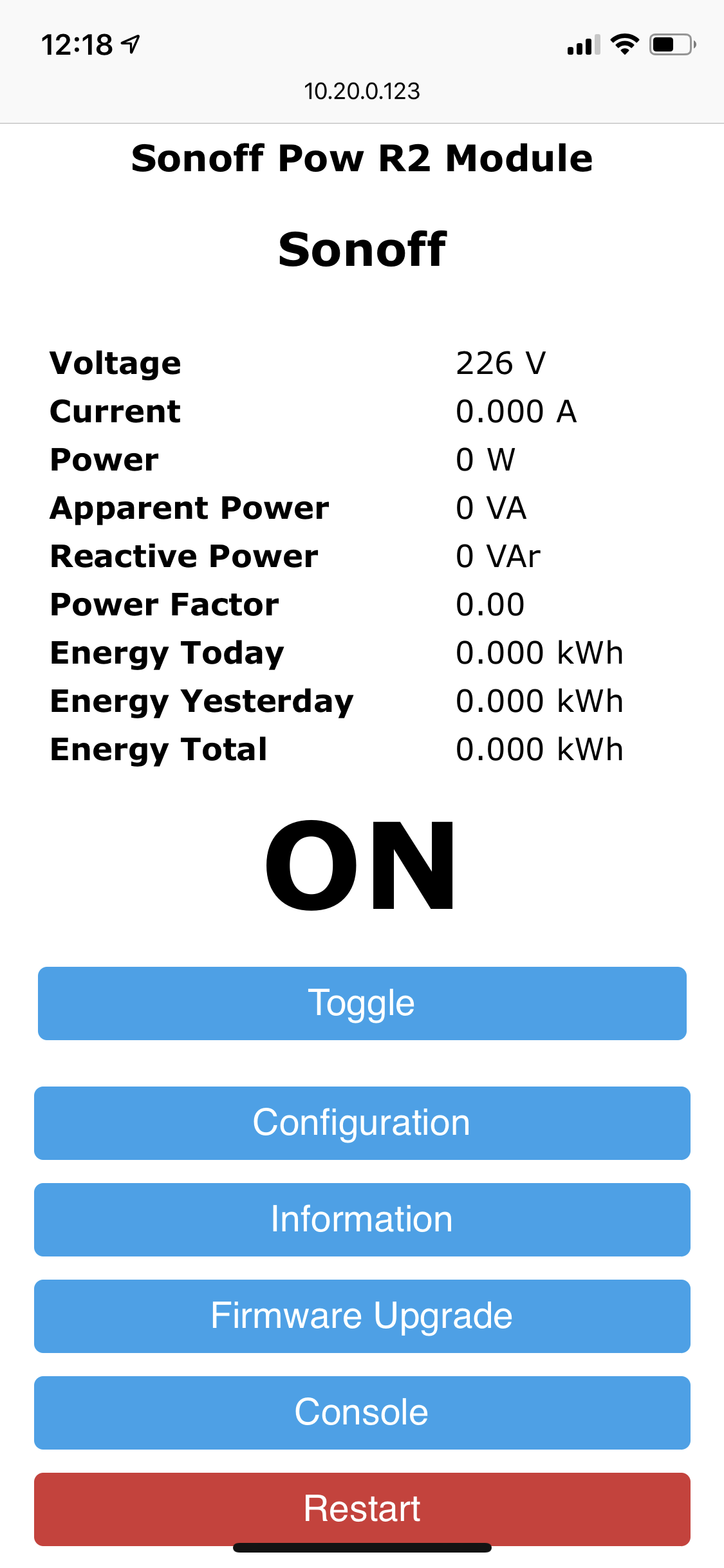 Unter Status werden die Watt vom Sonoff dargestellt.