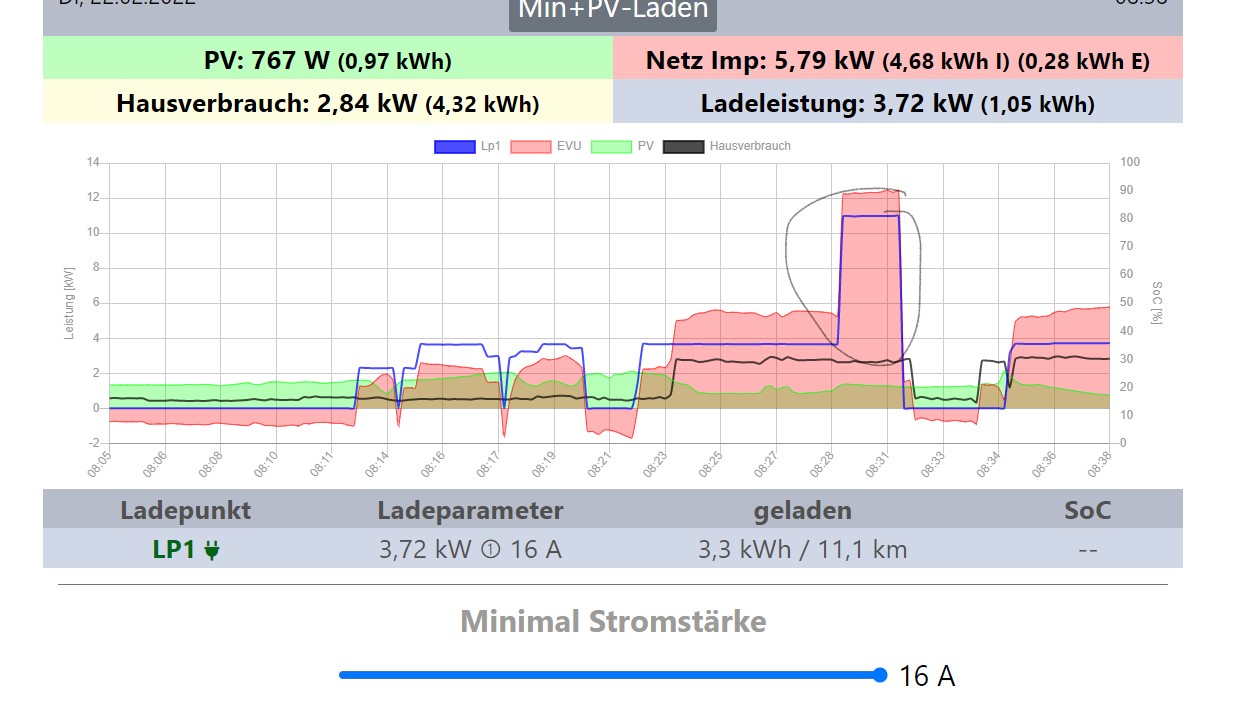 Einziger Harwareunterschied zu vorher ist (außer dem Zuleitungskabel), dass ich die dritte Phase nicht mehr am Zählereingang des Ladepunktes angeschlossen habe (beim Ladekabel war sie schon immer nicht mit an geklemmt).