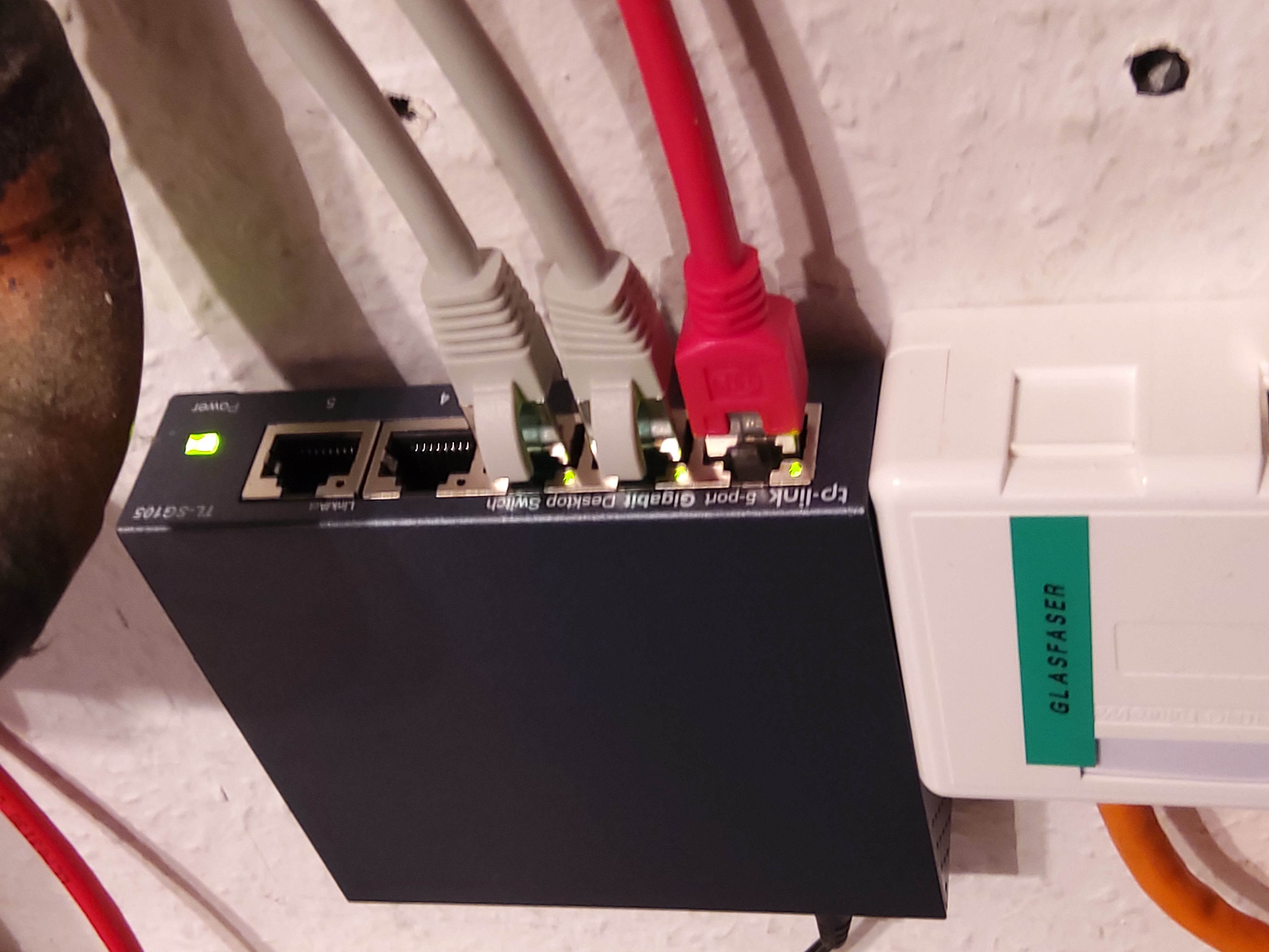 Der LAN 4 der FritzBox ist an dem Switch an Port 1 angeschlossen.