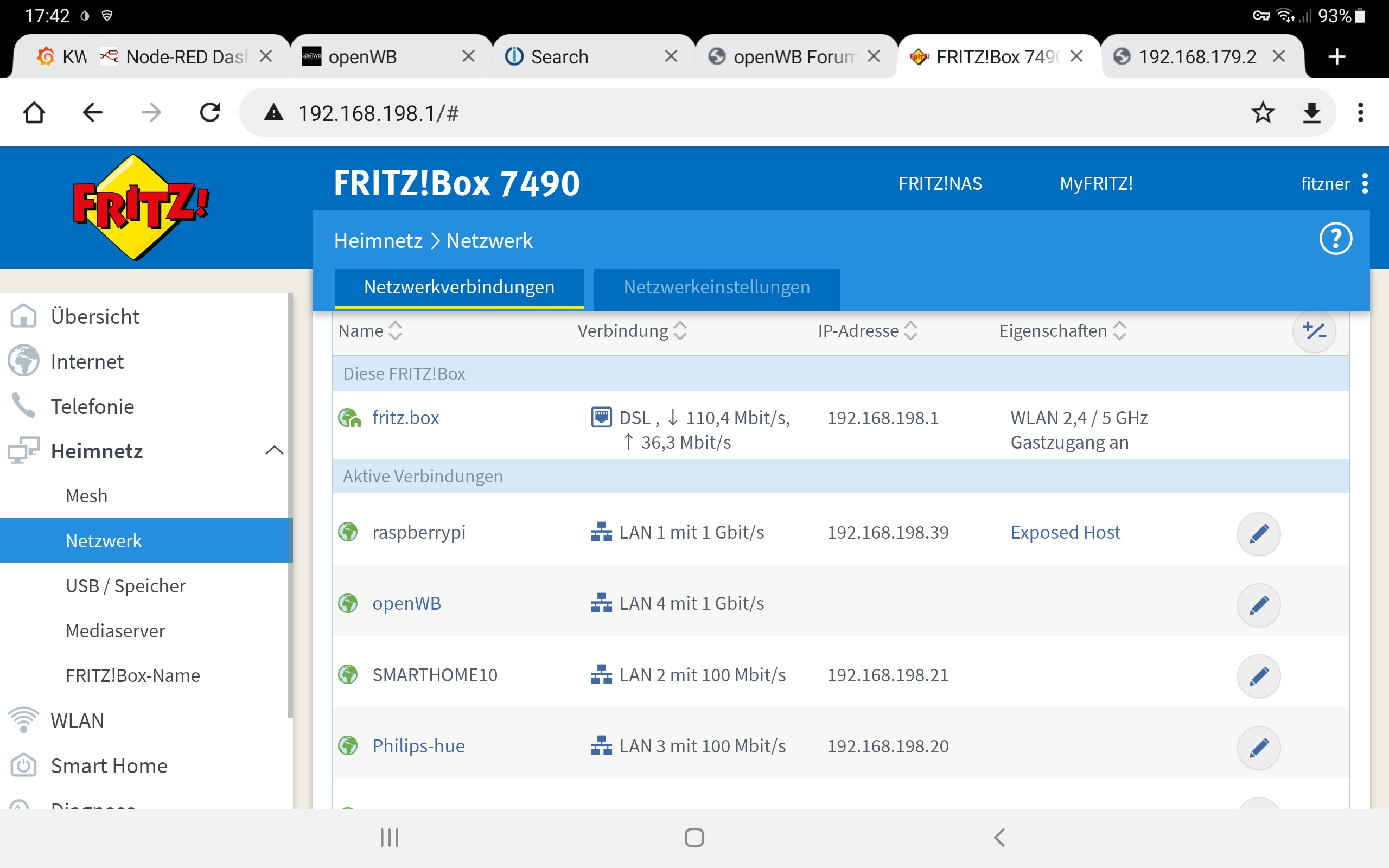 Was mich wundert ist dass die OpenWB keine IP Adresse in der FritzBox mehr hat s. Anhang