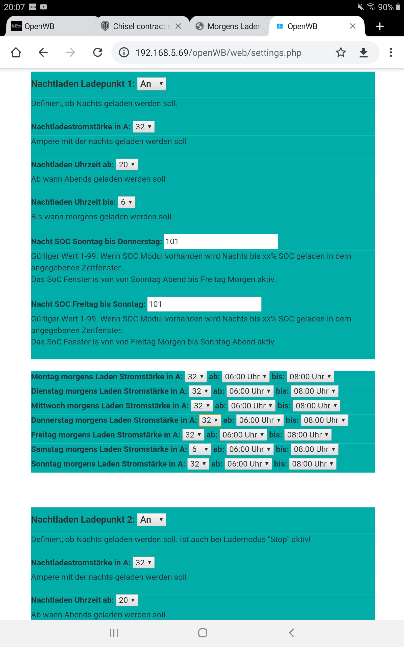 Re: [implementiert] Morgens Laden: je Wochentag & kleinere Zeitfenster