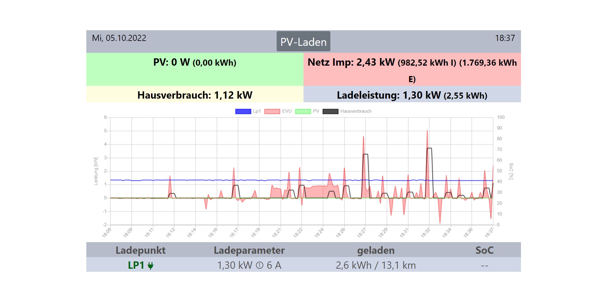 Die OpenWB liest auch ein, PV-Ü Laden hat am Nachmittag funktioniert, solange Sonne da war.