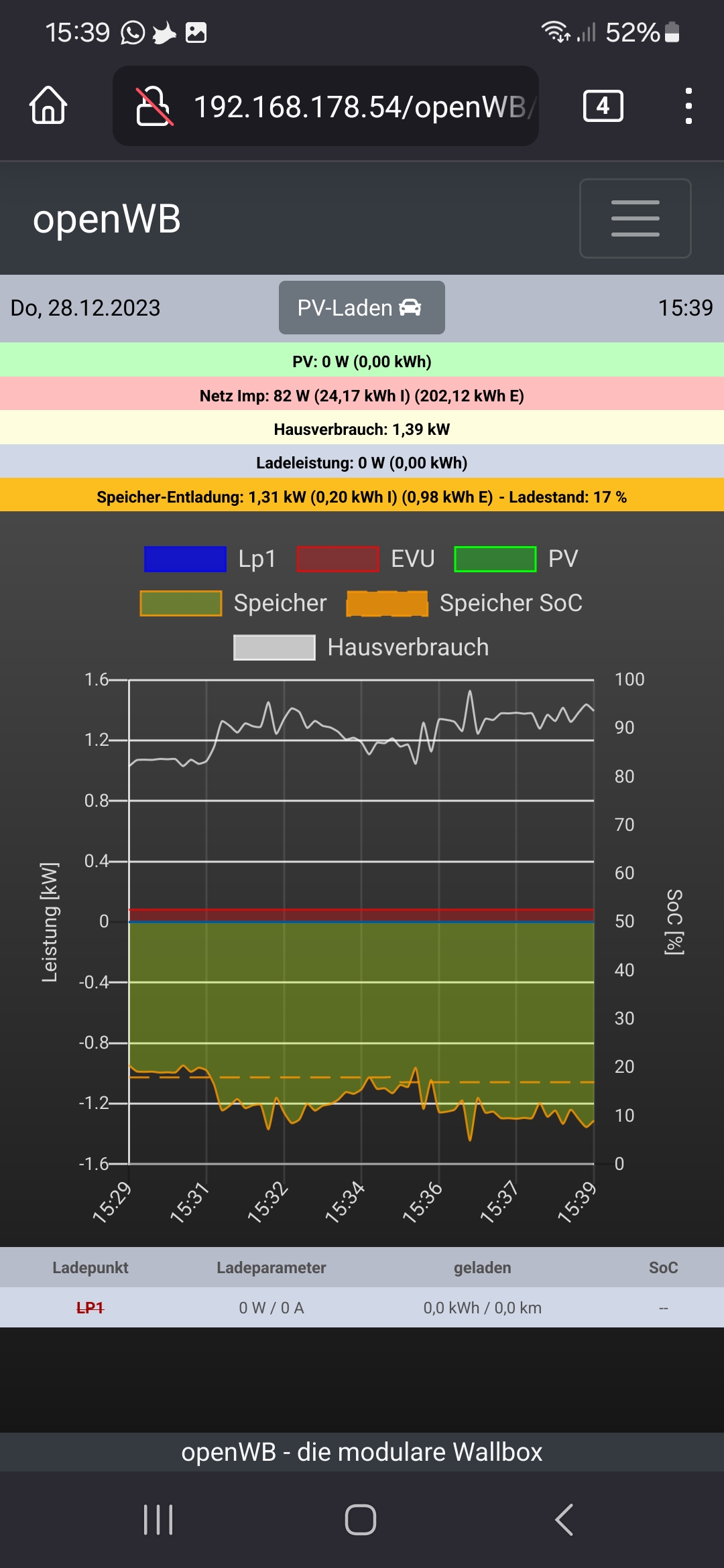 Also am Nachmittag hat es mir von der pv was im solar Web angezeigt aber halt nicht an der openwb!