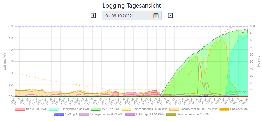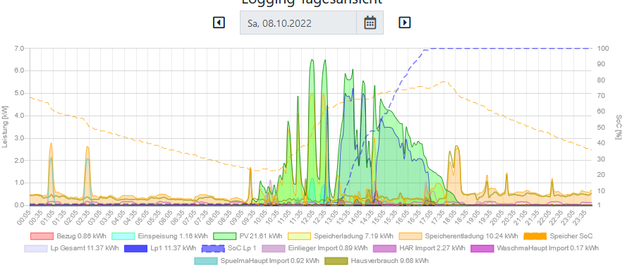 Was mir aufgefallen ist, dass der PV Wert zum Abend mit der Entladeenergie des Speichers kleiner wird ,vom Wert her nicht tragisch aber benerkenswert