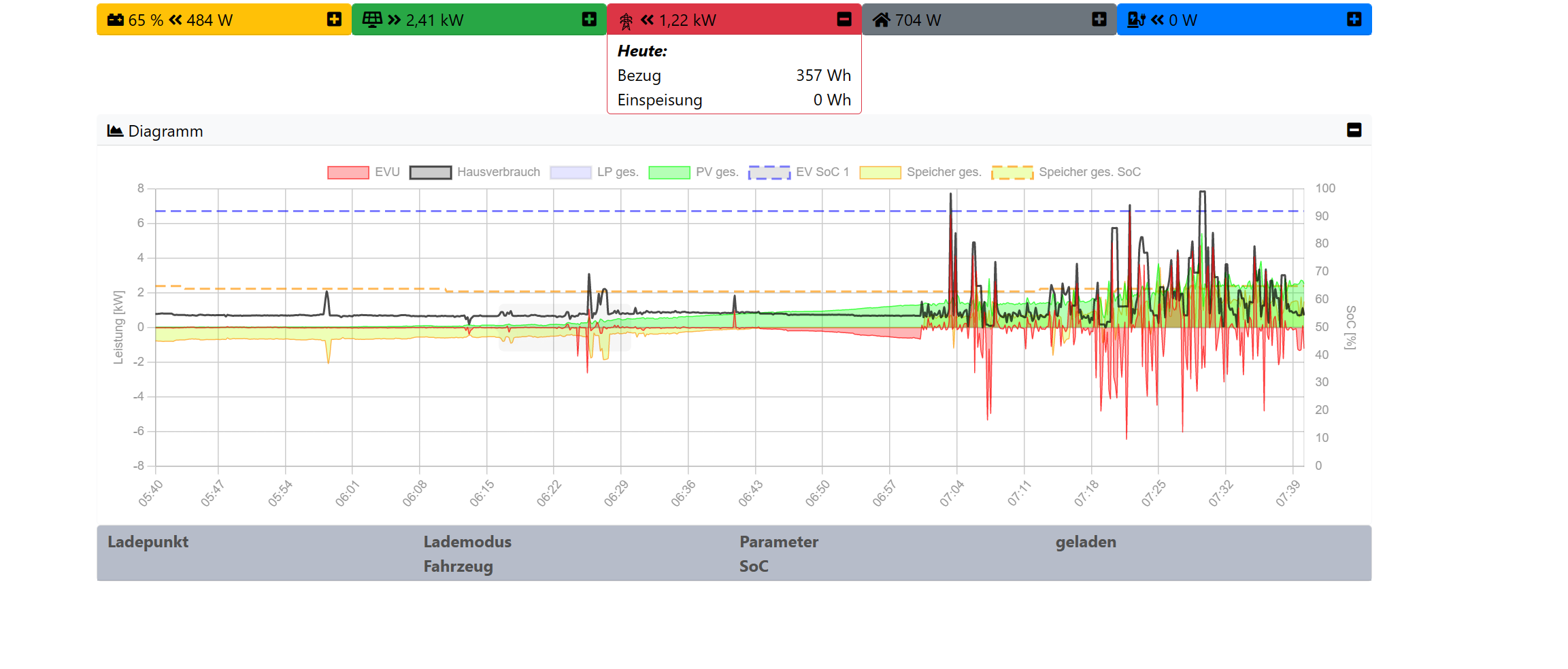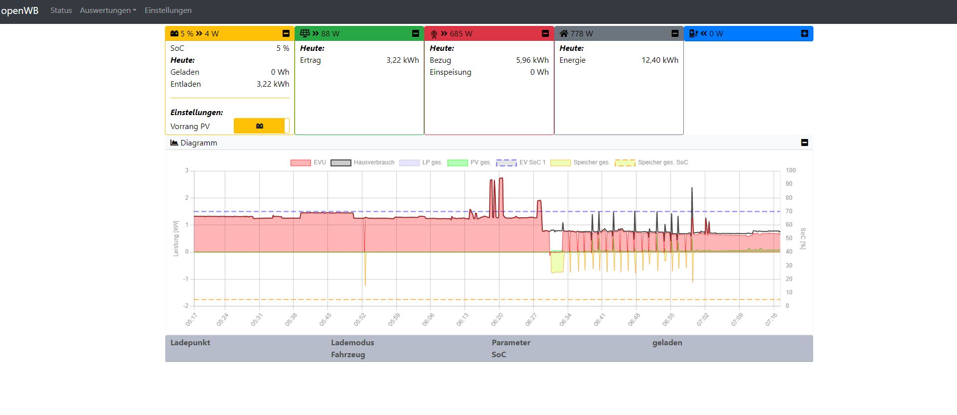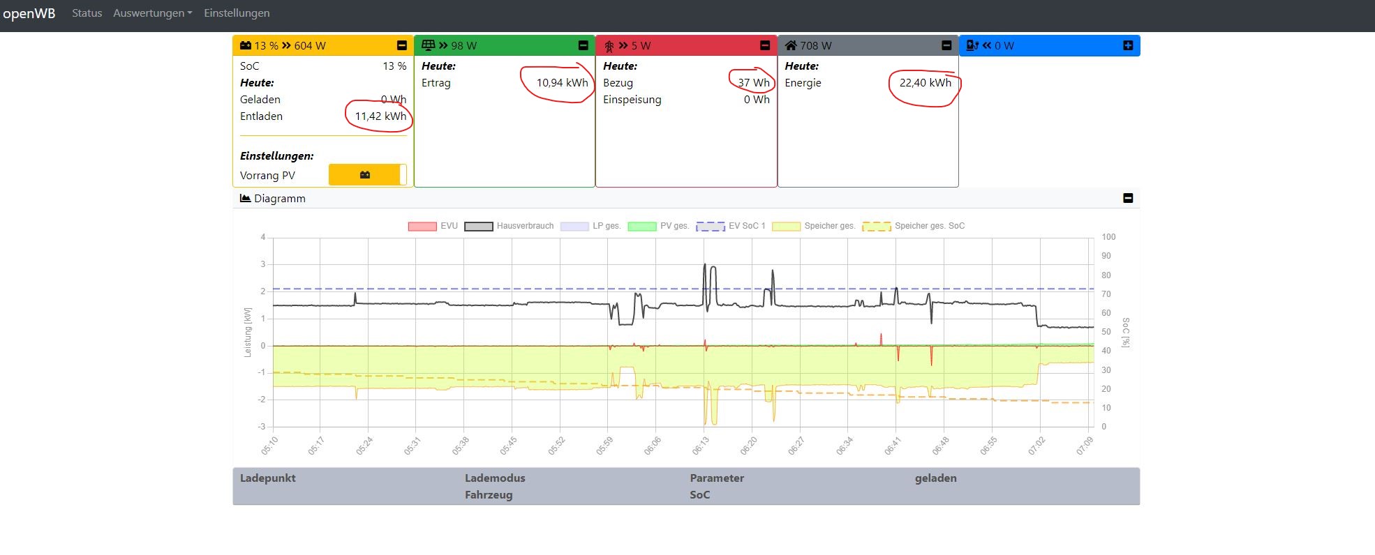 Kannst Du bitte noch einen Screenshot wie in der letzten Nachricht erstellen, wenn der Speicher ge- und entladen wurde? Und welcher Wert dann für den PV-Tagesertrag erwartet wird?