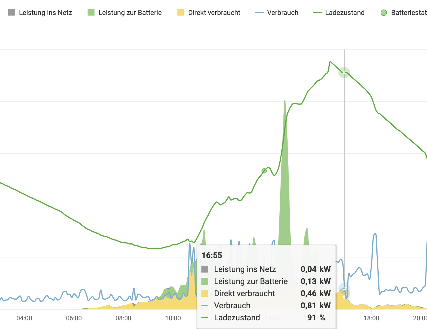 Ich bin bei Dir, die 100% Haus-SOC sind definitiv falsch zu dem Zeitpunkt, siehe Bild vom Fronius-Wechselrichter selber. BEIDE, die OpenWB und der Wechselrichter Reporten 91% um genau 17:00.