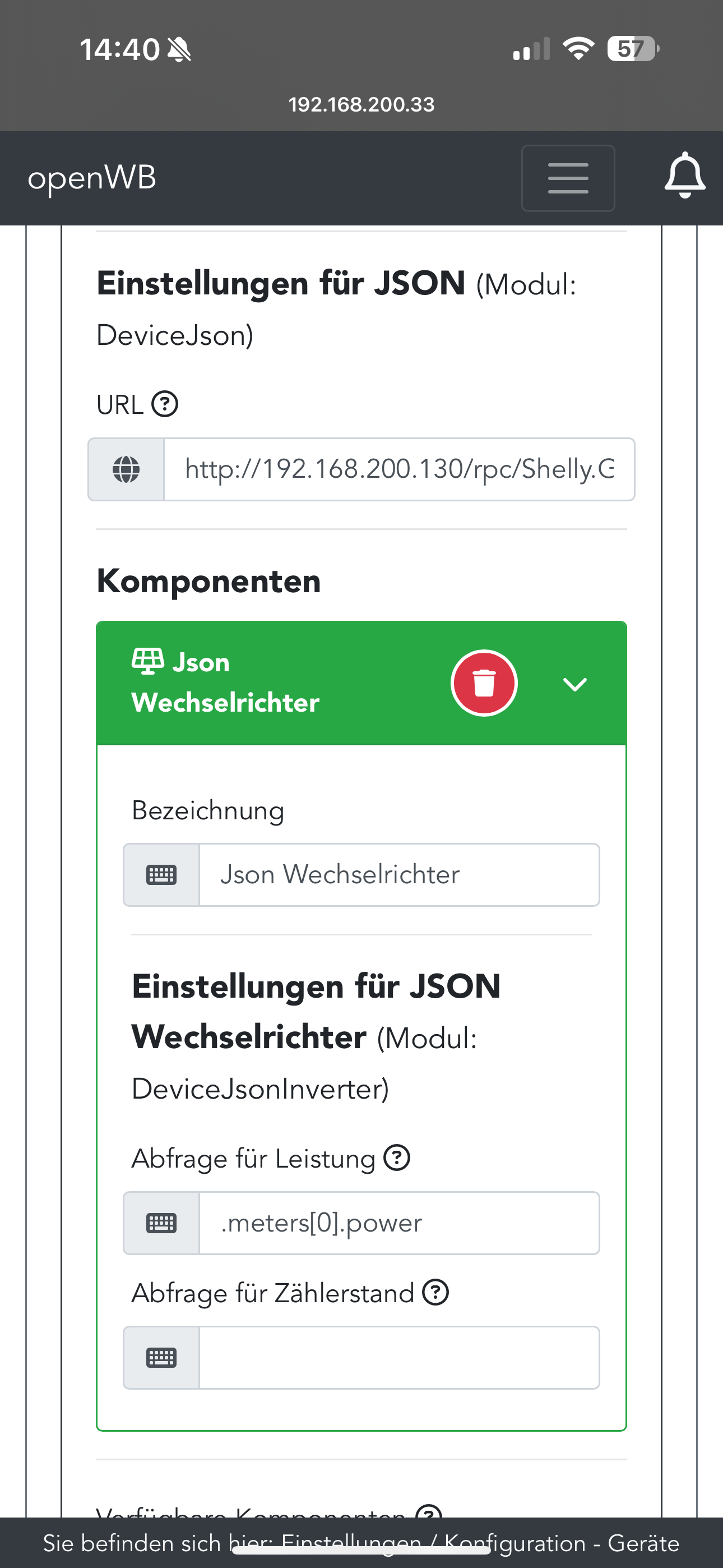 Ich hatte einen alten Shelly 1 PM zur Leistungsmessung einer PV Anlage über JSON bei der OpenWB eingebunden. Dieser ist mir nun leider kaputt gegangen und ich habe ihn durch den o.g. Mini ersetzt. Über die Shellyip/rpc/shelly.getstatus bekomme ich auch werte im Browser angezeigt, aber was muss ich im JSON Modul eingeben, damit ich wieder Leistungswerte für die PV bekomme?