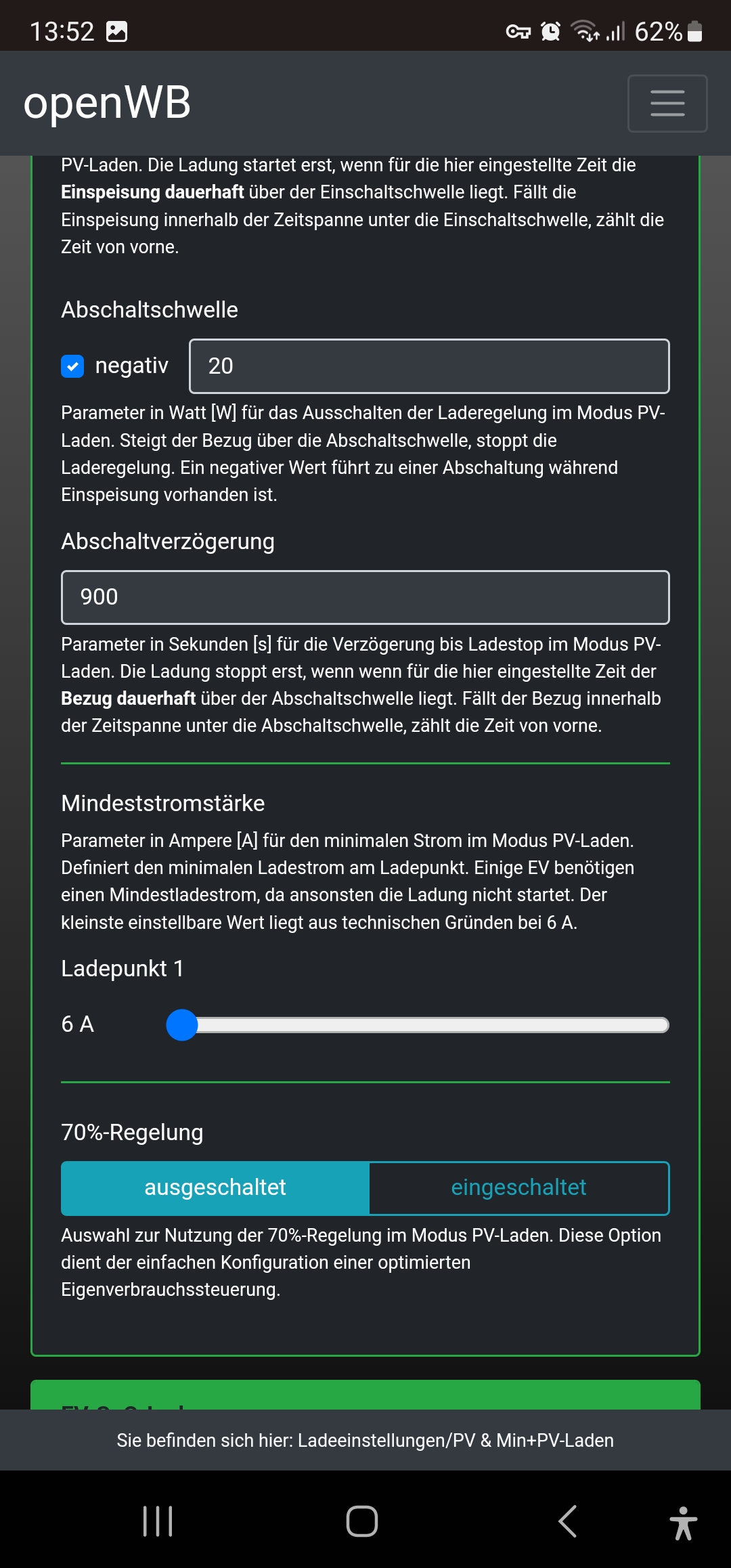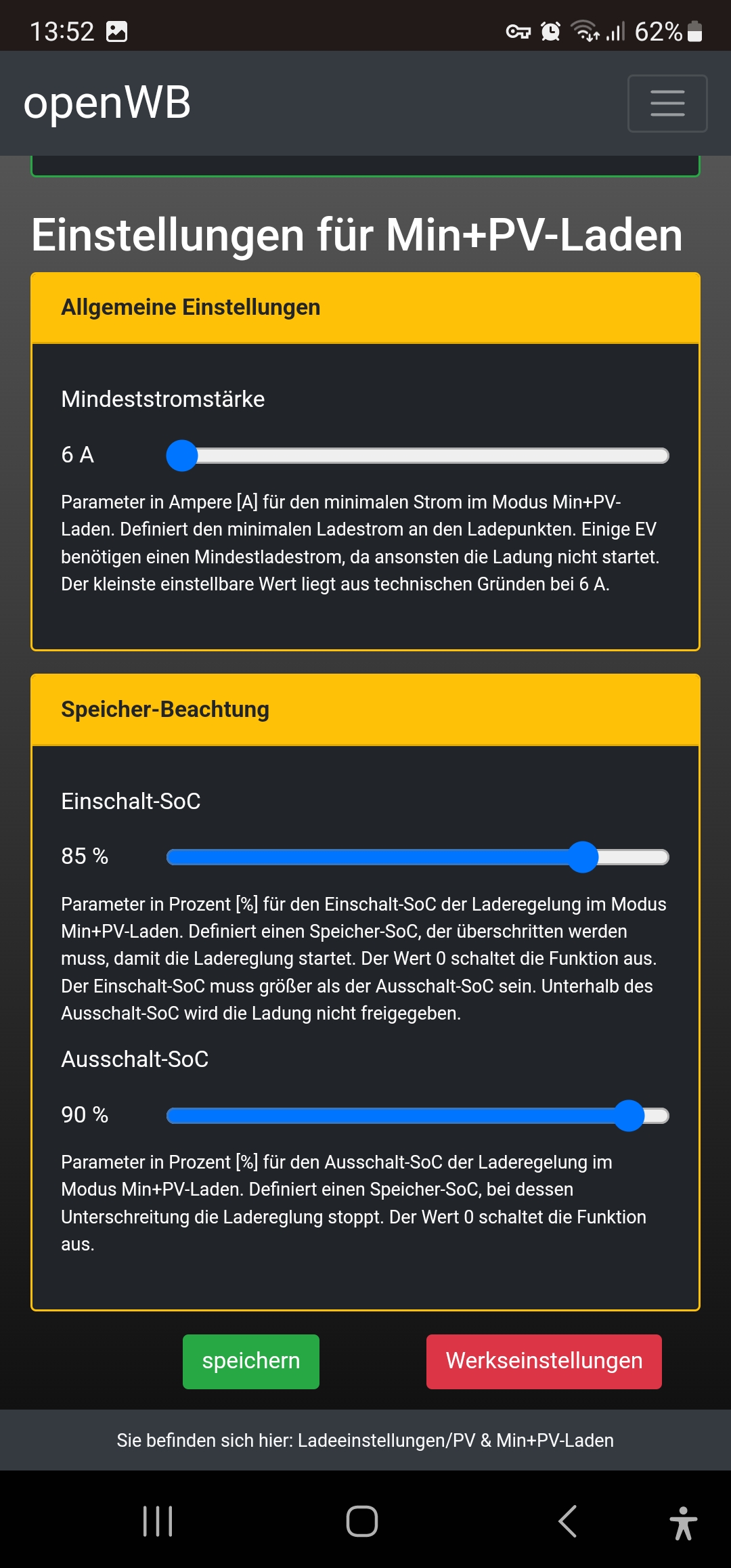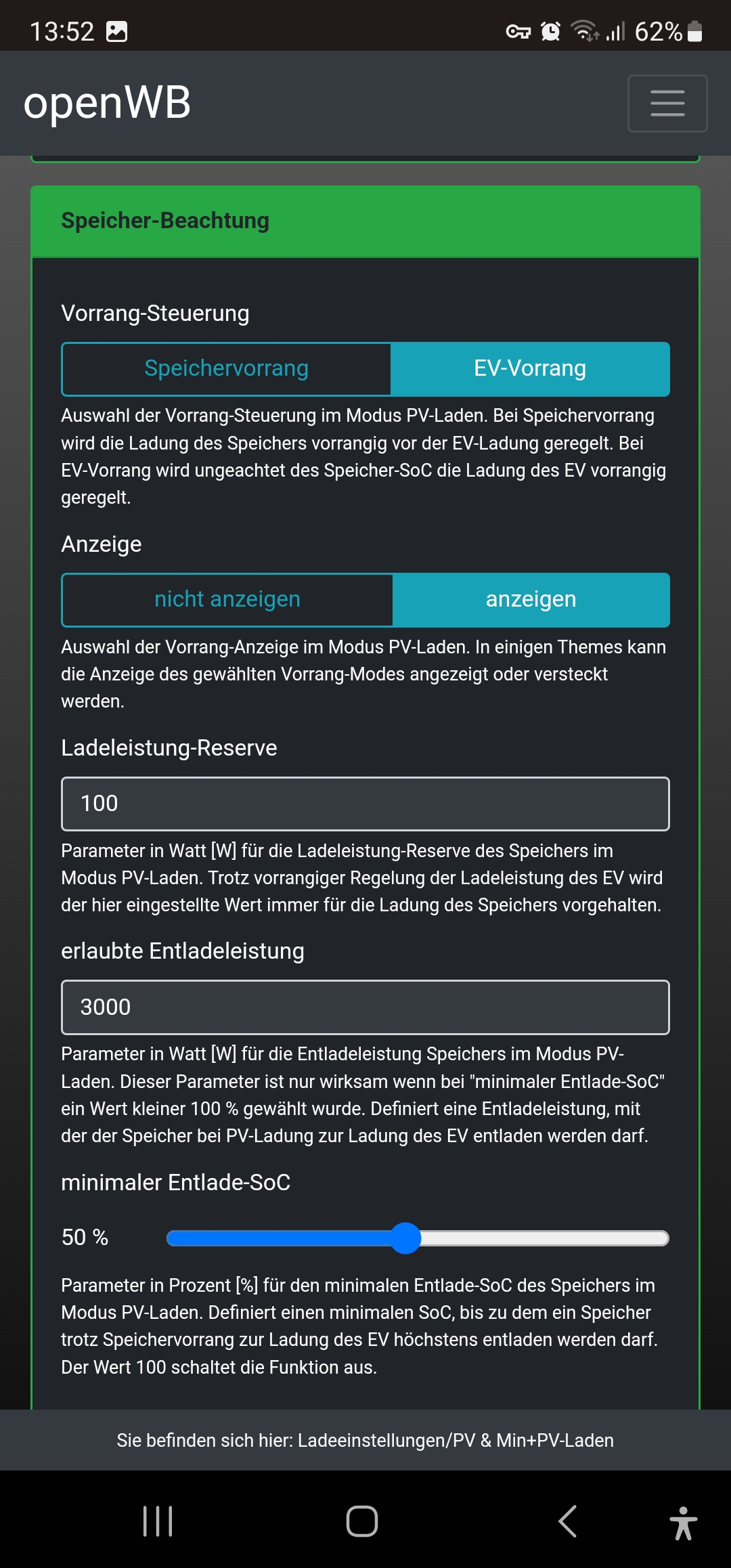 So zumindest reime ich mir das zusammen. Ich habe auch einen Hybrid-Speicher und mich schon immer gewundert, beim Auto priorisiert Laden immer auch noch einiges in die Hausbatterie geht. e3dc berichtet die Leistungen hat in der Form, als dass die openWB schon bei der 1.9 keinen Netzbezug macht. Bei anderen Herstellern ist das anders und daher gibt es nun diesen Parameter.