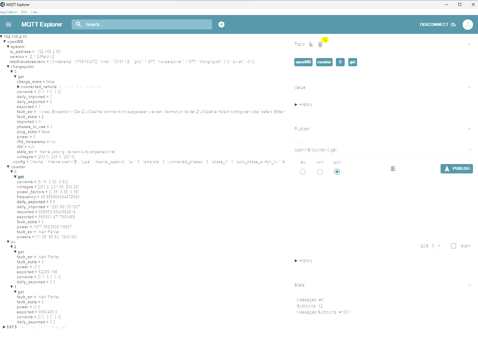 2024-01-13 01:08:41.449 ERROR (MainThread) [homeassistant.util.logging] Exception in message_received when handling msg on 'openWB/system/lastlivevaluesJson': '{"timestamp": 1705104521, "time": "01:08:41", "grid": 0.41, "house-power": 0.41, "charging-all": 0.0, "pv-all": -0.0}'