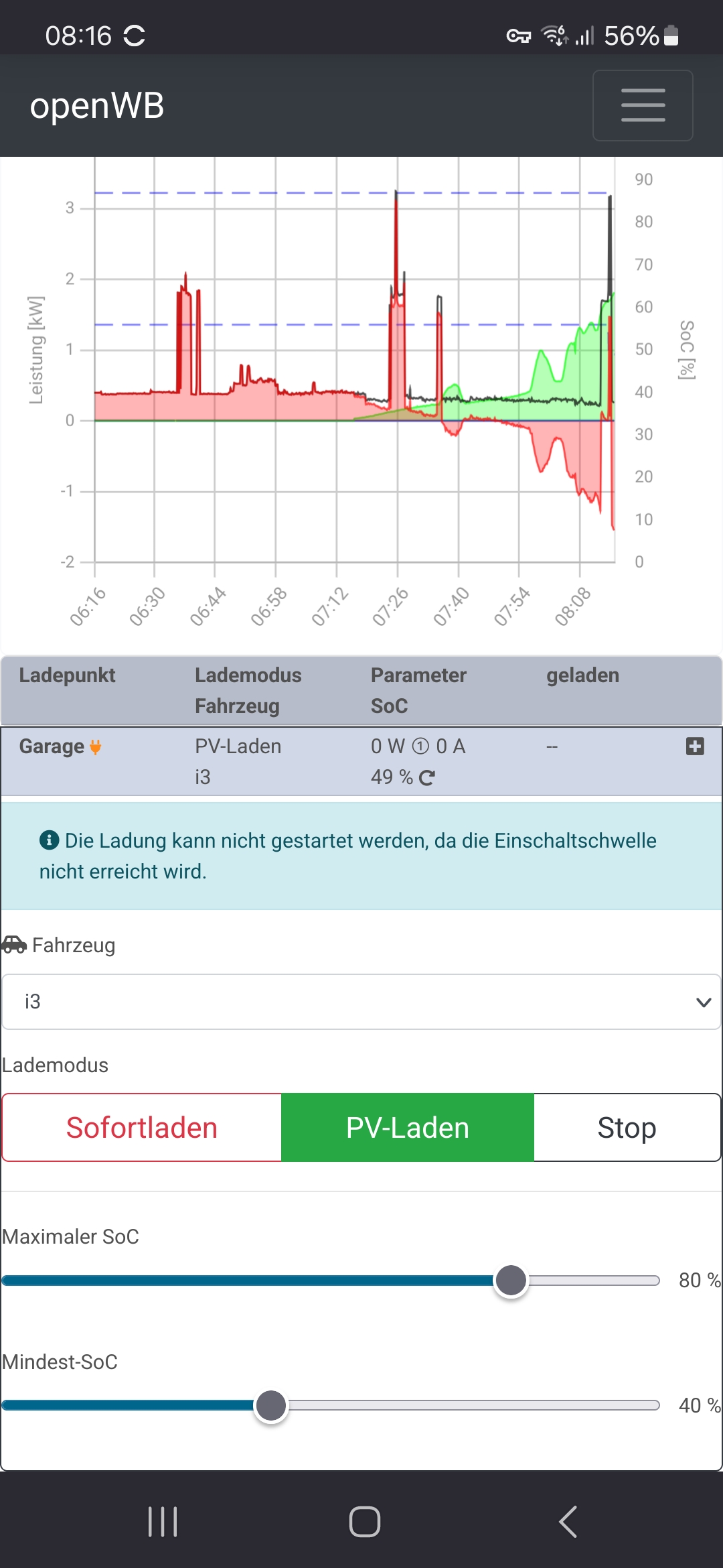 da unsere SmartWB kein Display hat wird die OpenWB-SW bei uns auch überwiegend über das Handy bedient, und zwar auch meist von meiner wenig technikaffinen Frau oder der Tochter. Das Standard-GUI ist dafür viel zu kompliziert und unübersichtlich (auch für mich!), da es viele Einstellungen enthält die man im täglichen Betrieb überhaupt nicht braucht, aber bei versehentlicher Verstellung das Laden verhindern kann.