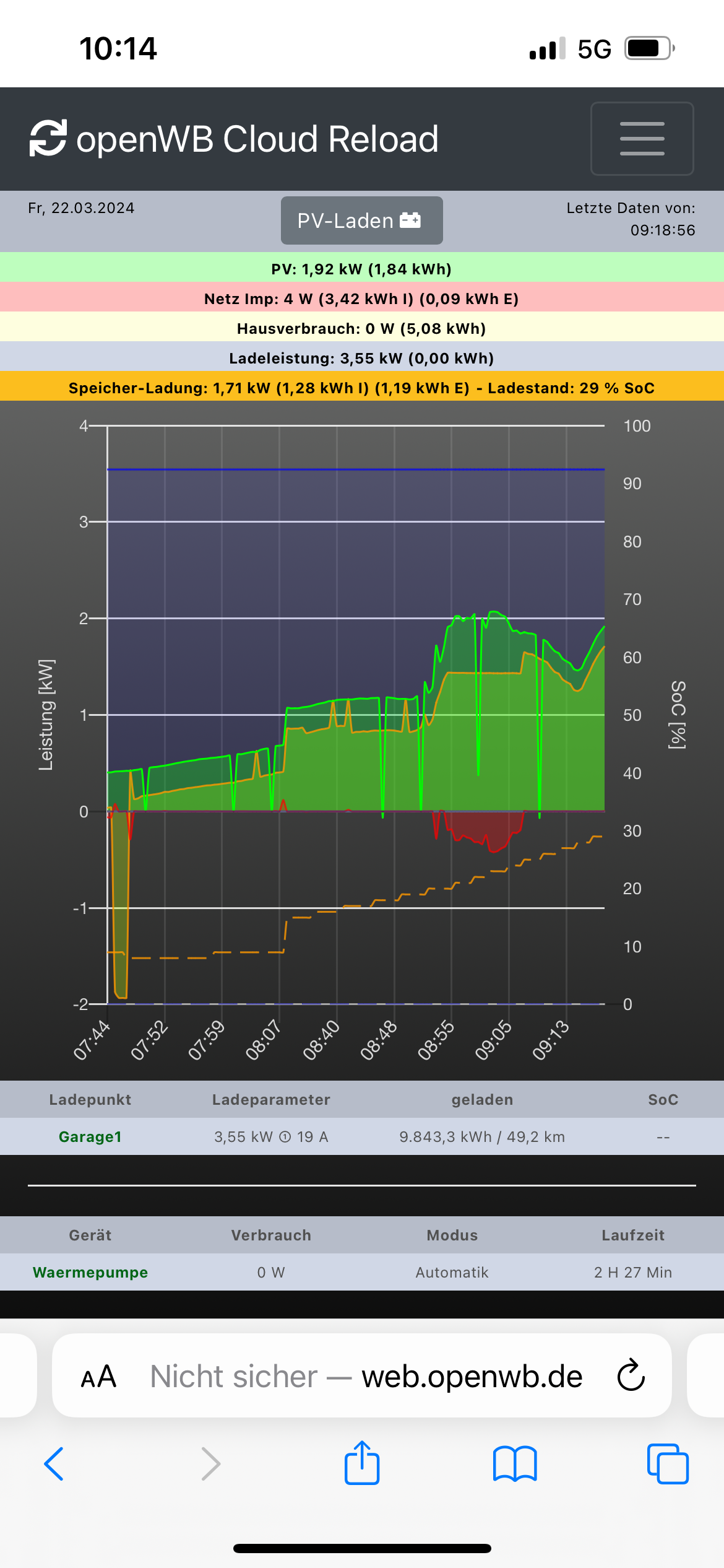 Komisch auch, dass der blaue Strich der Ladeleistung immer noch da ist, auch wenn das Fahrzeug gar nicht mehr läd