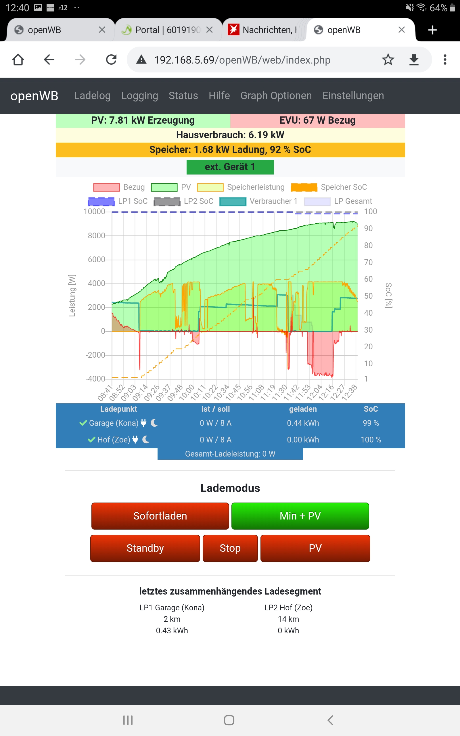 - LP1 und LP2 in dem Fall gleich konfiguriert (Später soll mal LP1 = PV laden und LP2 = Sofortladen sein)
