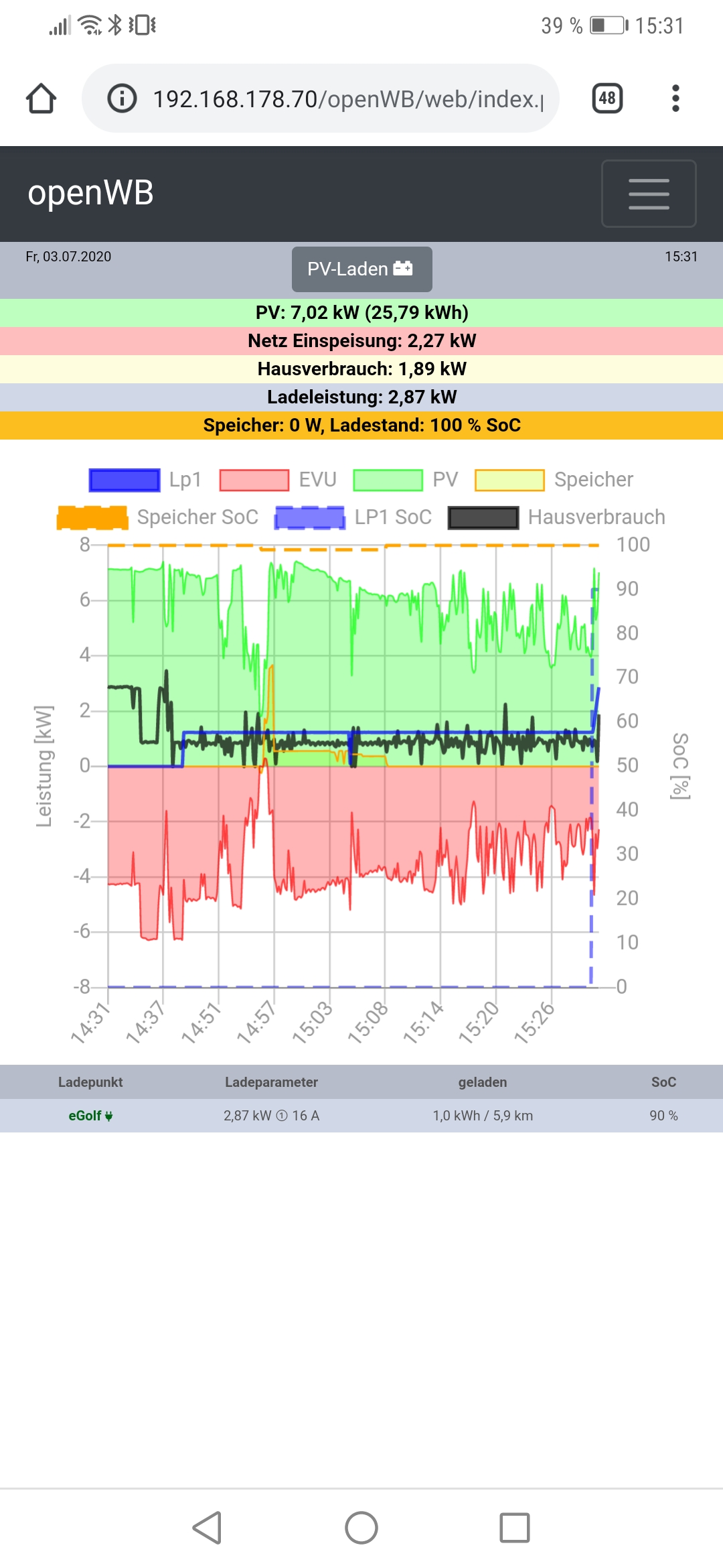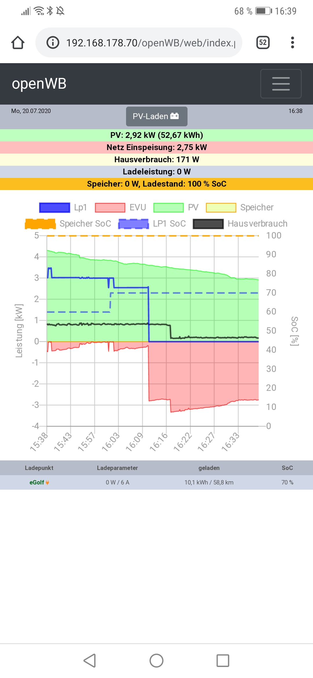 In den Einstellungen der Umschaltung ist NurPV auf einphasig gesetzt. Hier den Automatikmodus auswählen dann geht es.KrailPV hat geschrieben: Sa Jul 04, 2020 7:53 am Debug gesendet. Ich hatte vermutet, dass bei 6,93kw von Dach die Ladung auf 2Phasig umspringt?