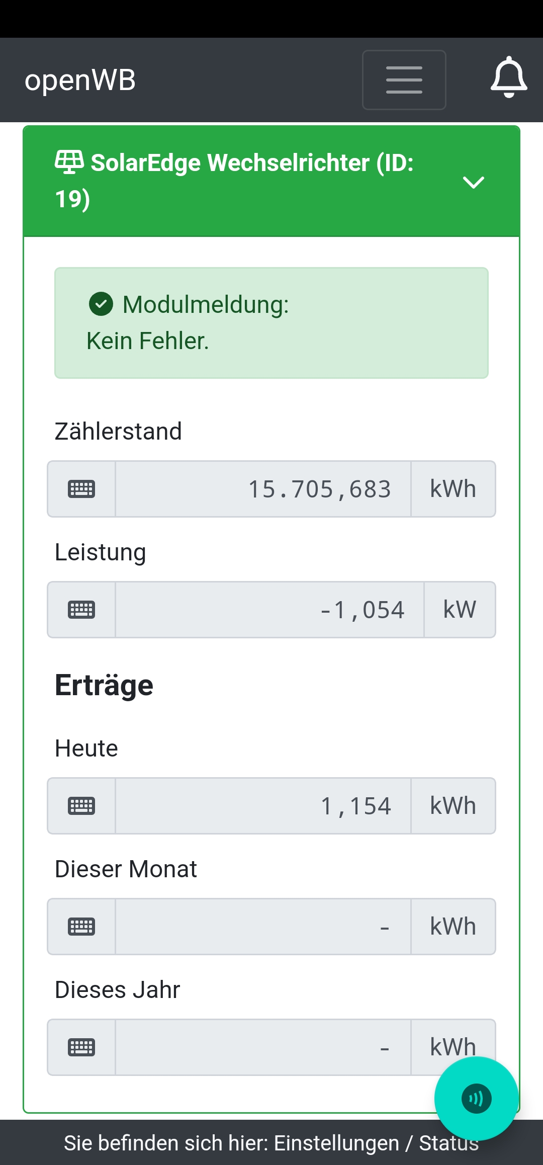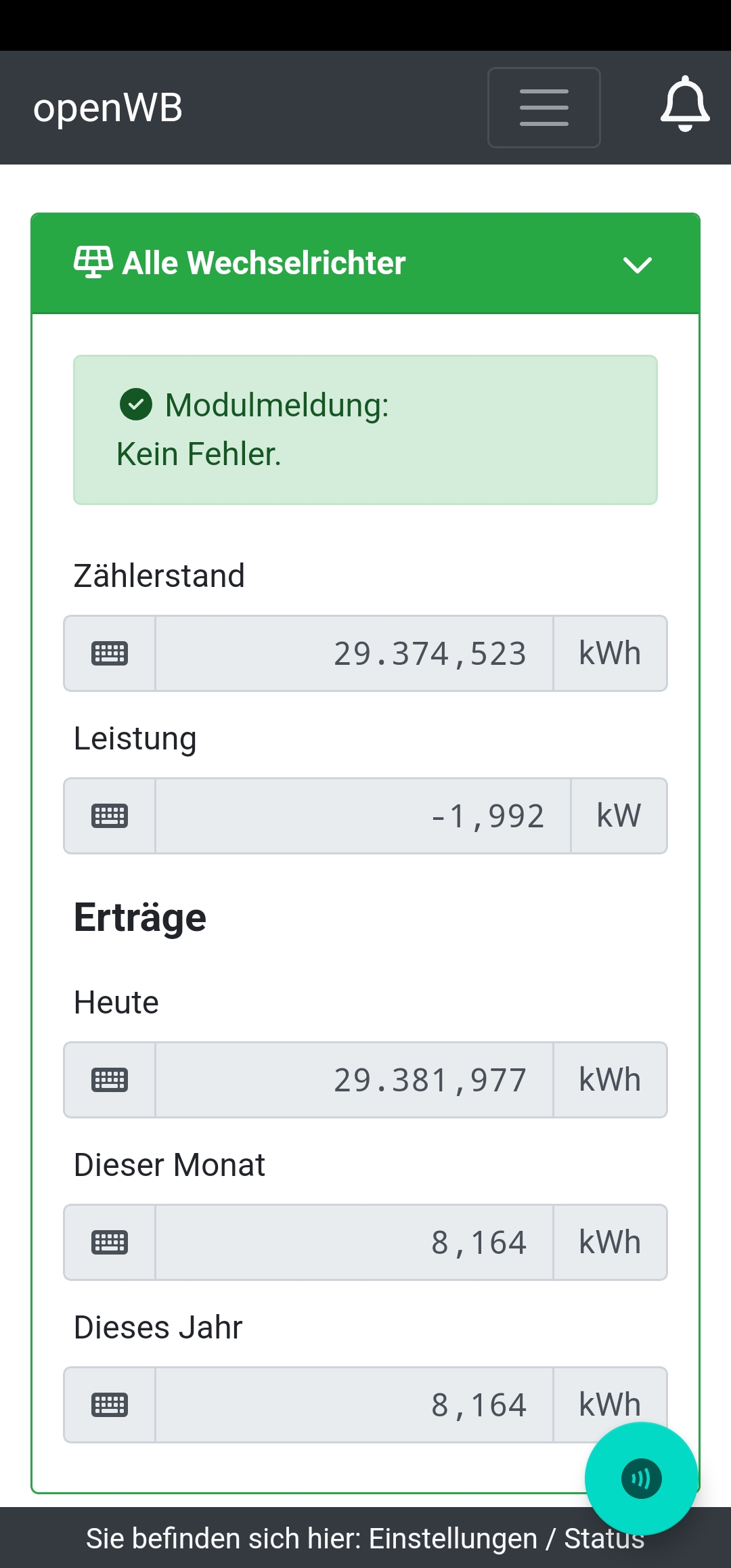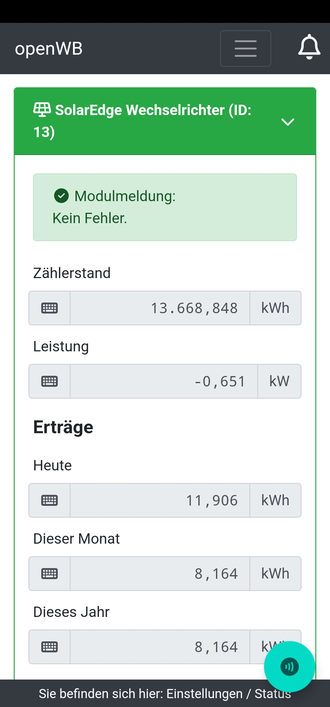 Ziel des Vergleichs ist es, zu einem bestimmten Zeitpunkt die Werte aus der PV-App mit denen auf der Status-Seite angezeigten zu vergleichen. Also beide Seiten sollten vom selben Beobachtungszeitpunkt stammen. Und bei Differenzen muss man sich den merken, der die Differenzen hat.