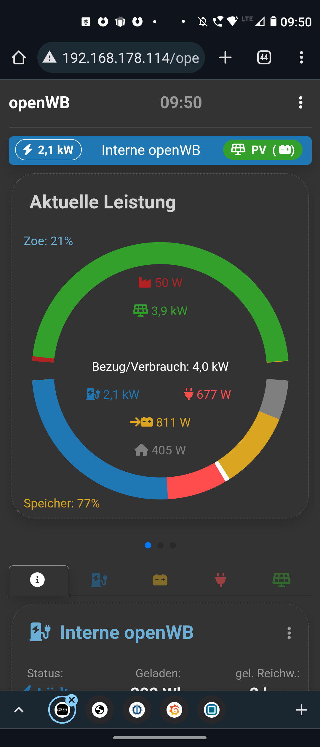 Jetzt lädt mein Auto im Modus PV Laden mit Batterieberücksichtigung (Batterie kann mit 3,5 kw laden).