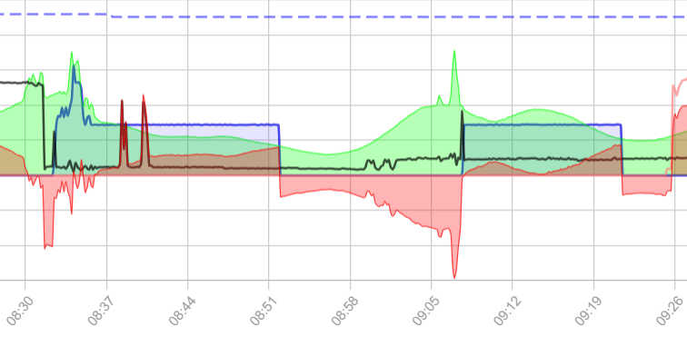 Für mich sieht es so aus, als wenn er erst ungefähr um den negativen Regelwert (-750W) als Bezug (also 750W) abgeschaltet hat.