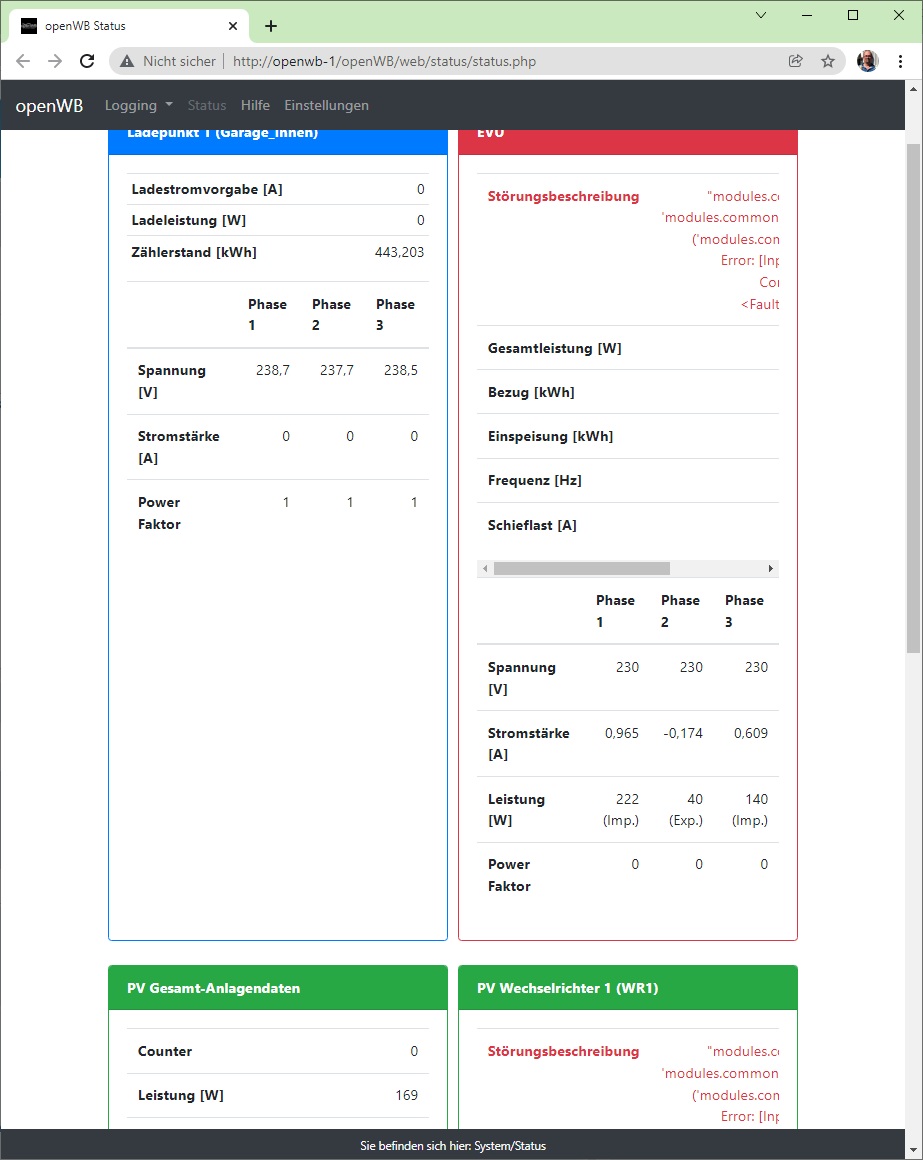 Aber weiterhin kommen Fehlermeldungen auf der Statusseite.