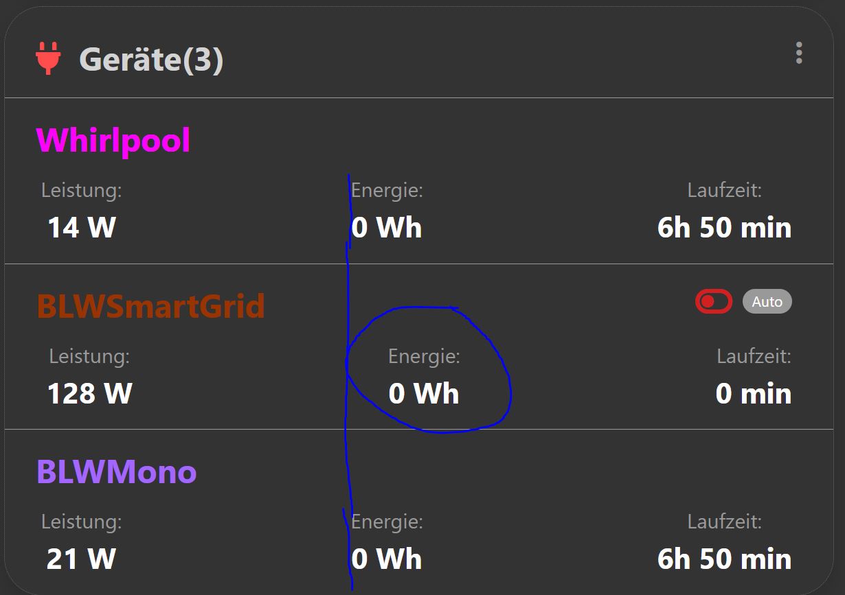 Das liegt an der Integration, kommt irgendwann.holgerwolf hat geschrieben: Mi Nov 08, 2023 10:17 am Ich bekomme auch mit dem aktuellen Master immer noch keine Anzeige des Energie-Verbrauchs (kWh) der smarthome Geräte.