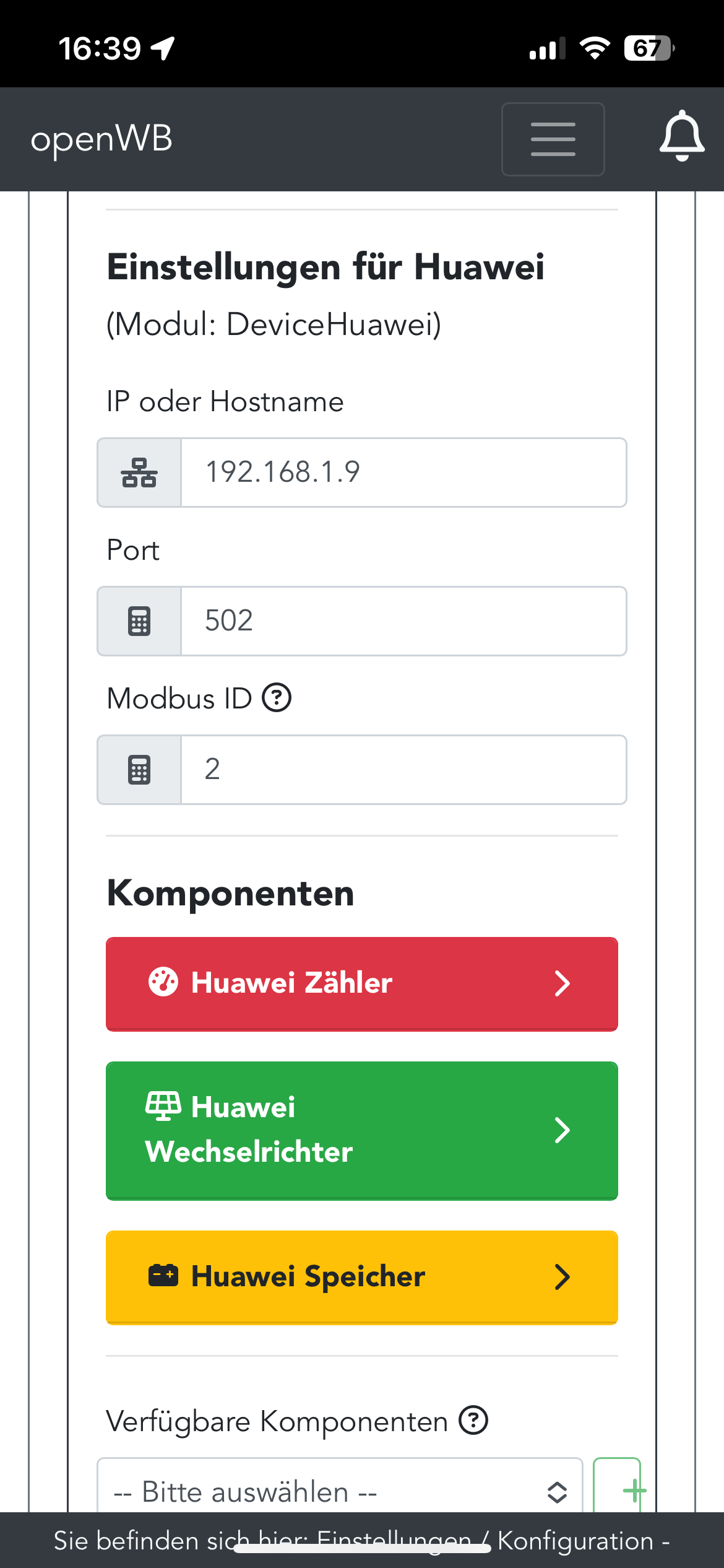 Einbindung Huawei Speicher, WR und Smartlogger im System 1.9, Ladepunkt mit SOC Auslesen von Audi, jetzt Opel.