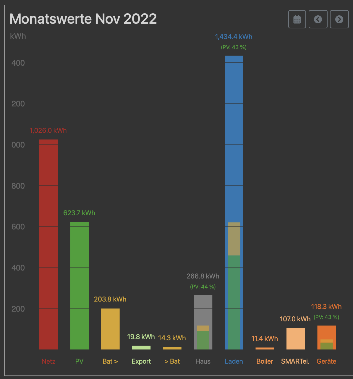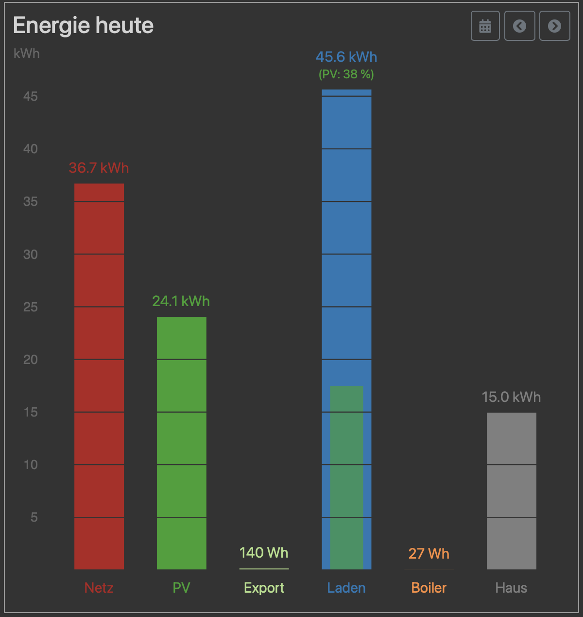 - Bei Haus noch einen Abschnitt was von PV kam wie bei Laden und Geräte wäre optimal, dann hätte man es komplett wie gut man den PV-Strom genutzt hat