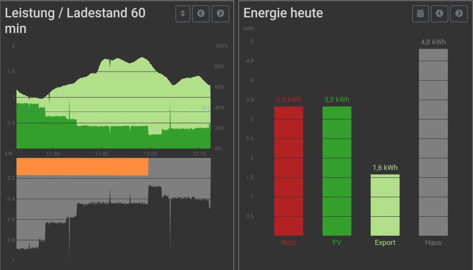 Noch eine Frage zur Darstellung. Die anteiligen Werte kommen beim Hausverbrauch erst wenn ich den mittleren Graph auf "heute" stelle. In der Ansicht 60 Minuten, also der Default-Seite, kommt der Wert nicht. So gewollt? In der "so schau ich immer auf die Box" Darstellung würde ich mich über die Aufteilung auch freuen. (Ladebalken konnte ich noch nicht testen).