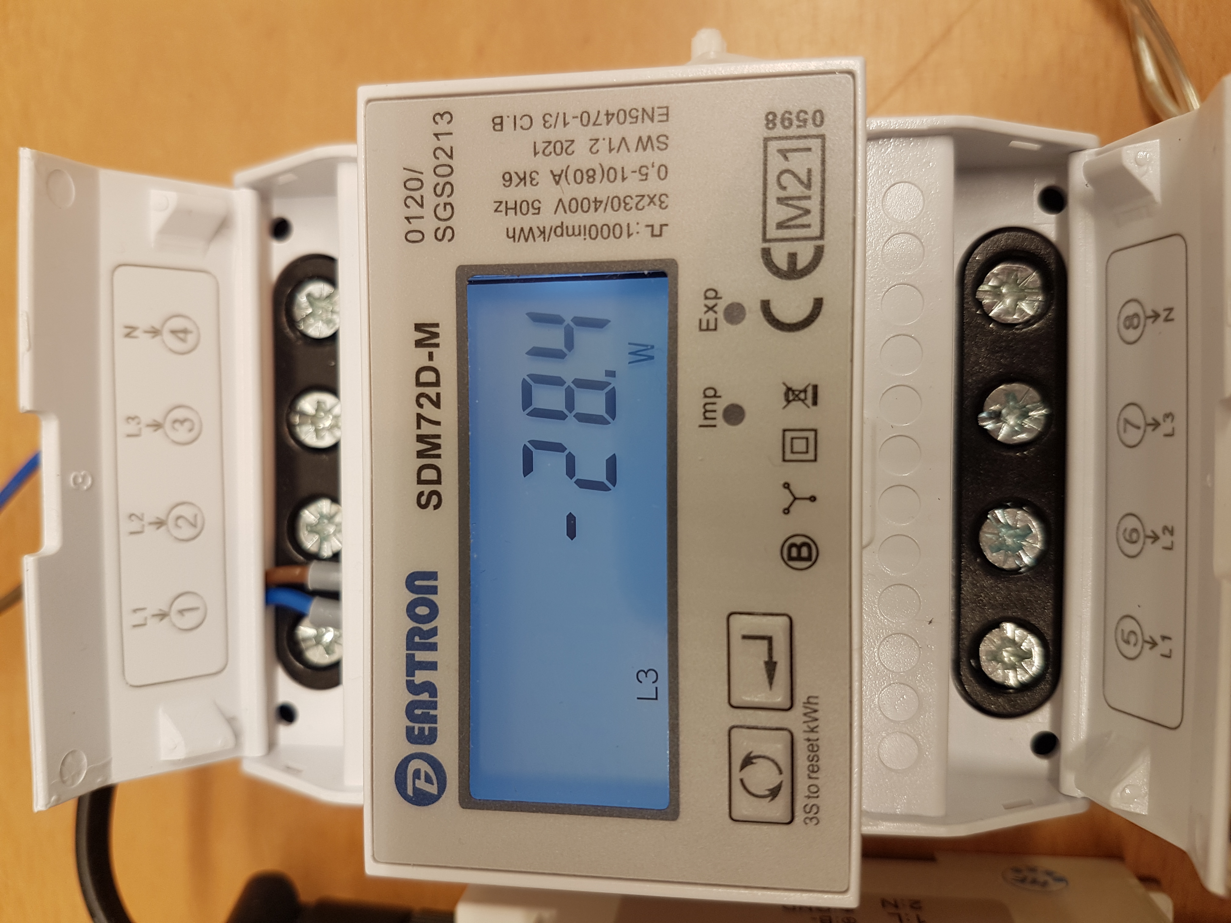SDM72 wieder ans Netz, umkonfig. von 2x120 auf 72 und siehe da: