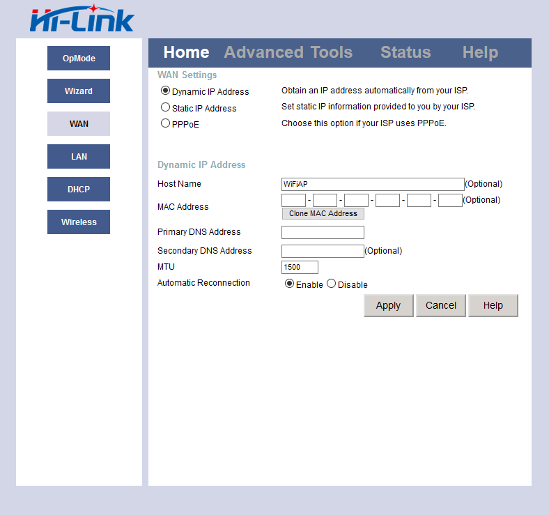 Das will ich noch nicht akzeptieren, weil das ganze eigentlich nur ein "privates" Netzwerk ist. Der Hi-Link ist nichts anderes als ein Router. Ich hatte Dir ja noch eine PN geschickt wegen den OP Mode. Aber es ist möglich die kompletten Settings vom Hi-Link zu sichern. Oben unter Tools->System Dann save to local HArddrive. Das erzeugt dann ein .bin mit den kompletten Settings vom Hi-Link. Wenn mir das jemand per PN schicken könnte, hätte ich große Hoffnung. Würde mich umgekehrt revanchieren und herausfinden, was falsch eingestellt war, was anderen dann helfen würde.